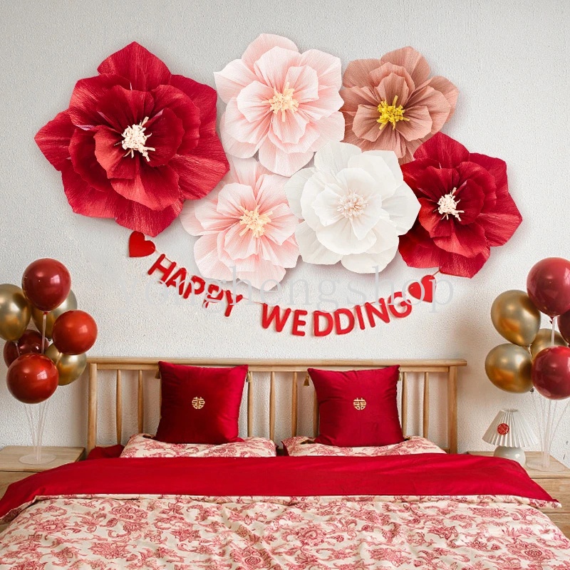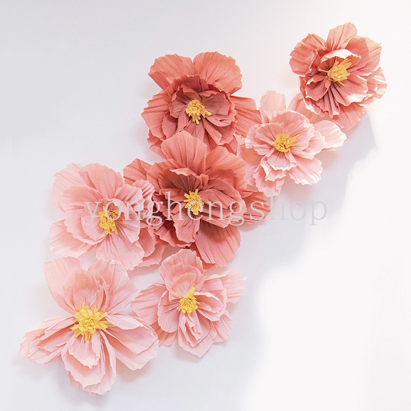 20cm 3D Colorful Crepe Paper Flower DIY Crafts Background Wall Decoration Baby Shower Wedding Birthday Party Supplies Artificial Wrinkle Paper Rose Flowers Decor