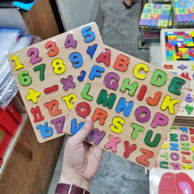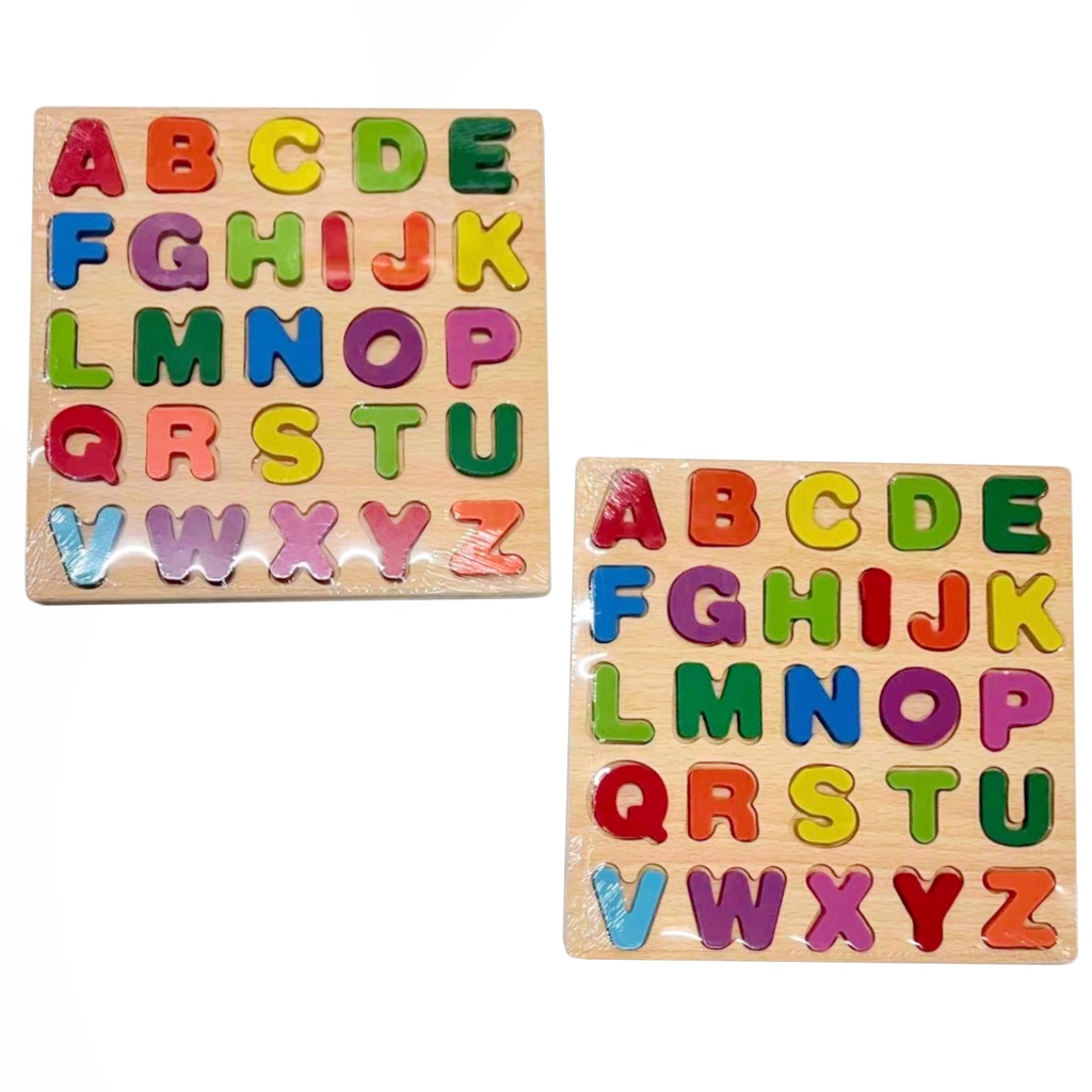 20cm WOODEN ALPHABET NUMBERS SHAPES PUZZLE PEGS