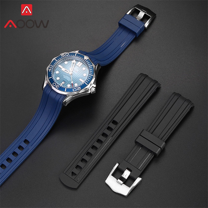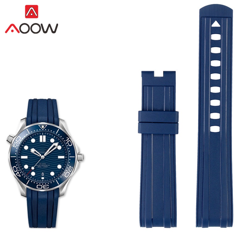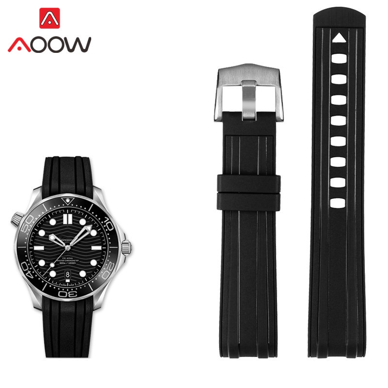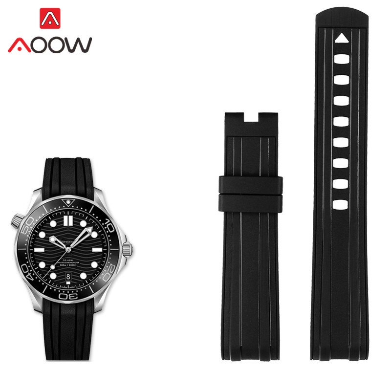 20mm 22mm Rubber Strap Curved End for Omega Seamaster 300 Waterproof Diving Stainless Steel Buckle Men Replacement Watch Band