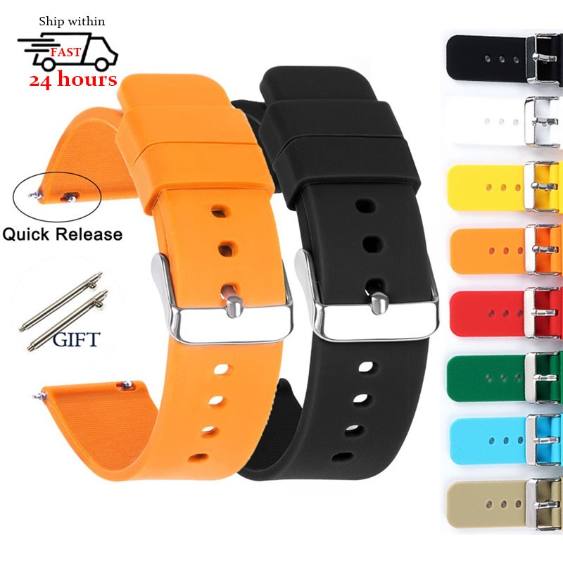 20mm 22mm Silicone Watch Strap 14mm 16mm 18mm Quick Release Soft Rubber Watchband Waterproof Universal Replacement Bracelet Watch Accessories