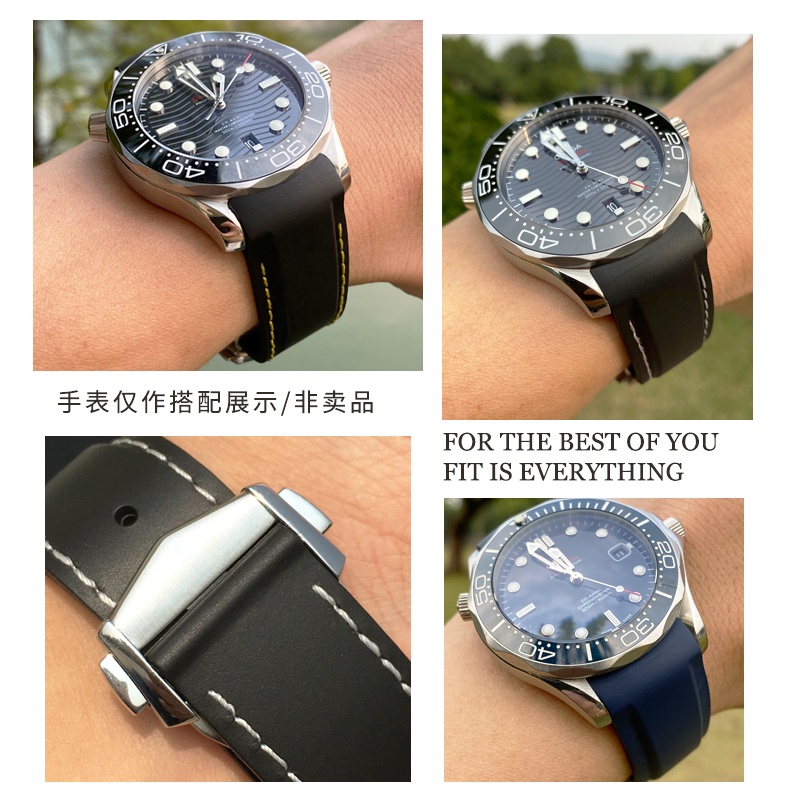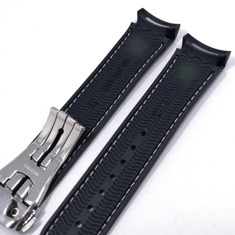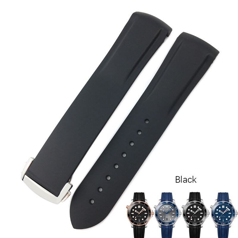 20mm 22mm Silicone Watch Strap for Omega Seamaster 300 Bracelet Blue Black Orange Strap Silver Stainless Steel Buckle