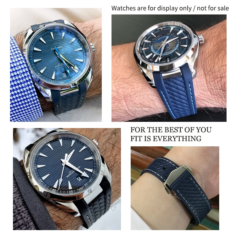20mm Rubber Silicone Watch Strap for Omega Seamaster 300 AT150 Aqua Terra Ultra Light 8900 Steel Buckle Watchband Curved End Bracelets