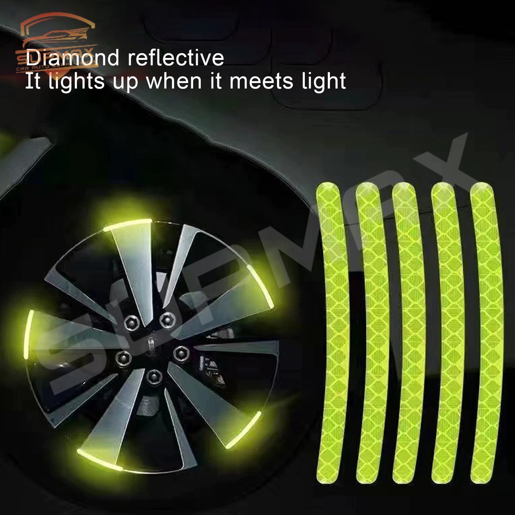 20pcs Car Wheel Hub Reflective Sticker Tire Rim Reflective Strips Luminous Sticker for Night Driving