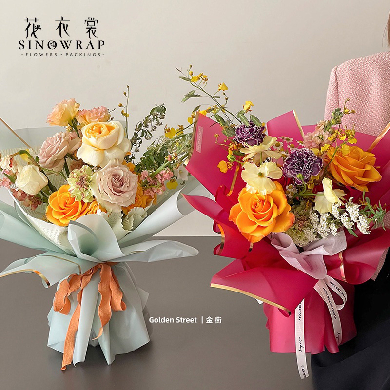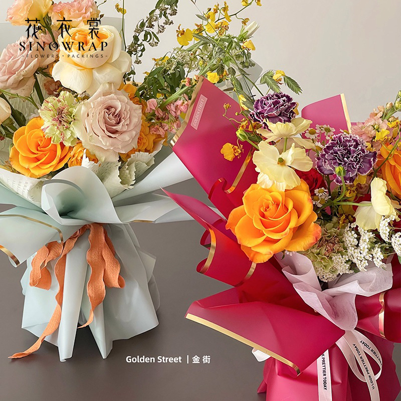 20pcs Gold Border Flower Wrapping Paper