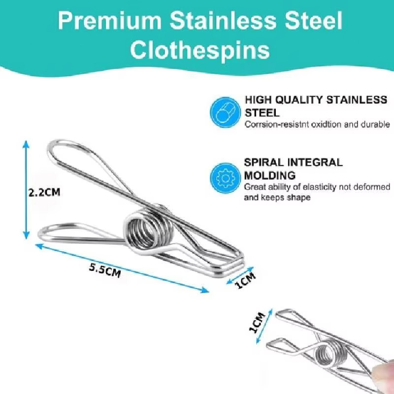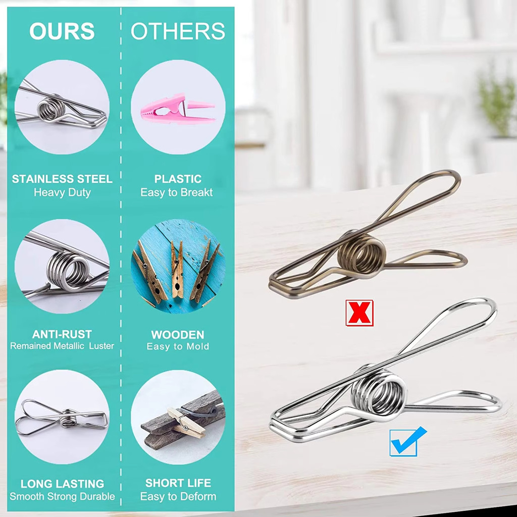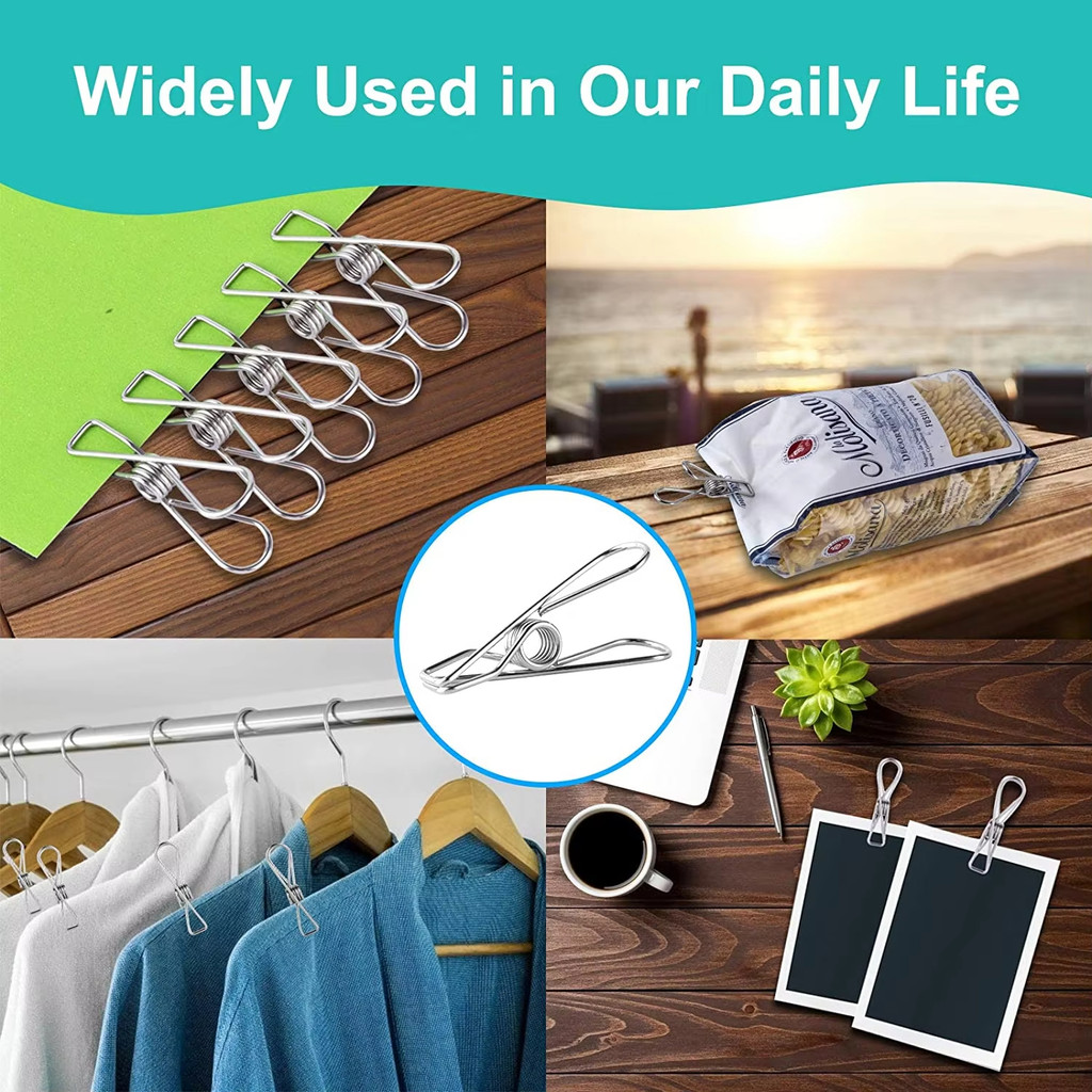 20pcs Multipurpose Stainless Steel Spring Clips Clothing Clips Sealing Clips Clothing Fasteners