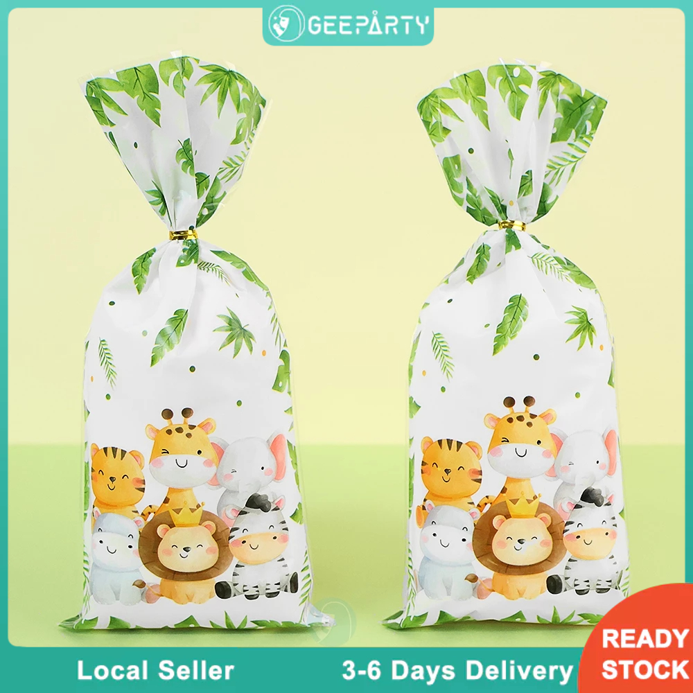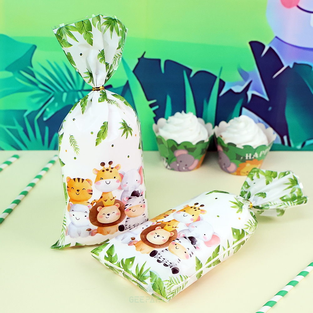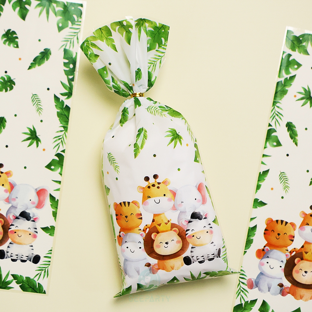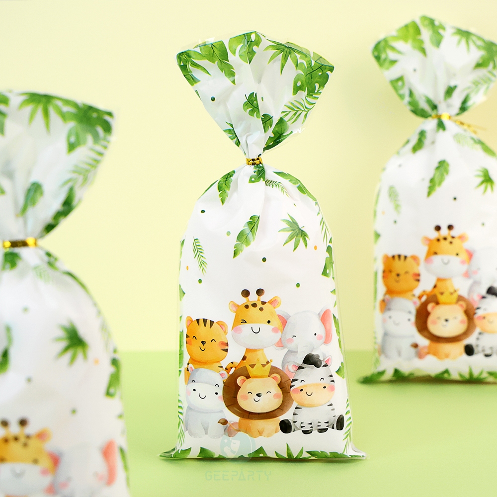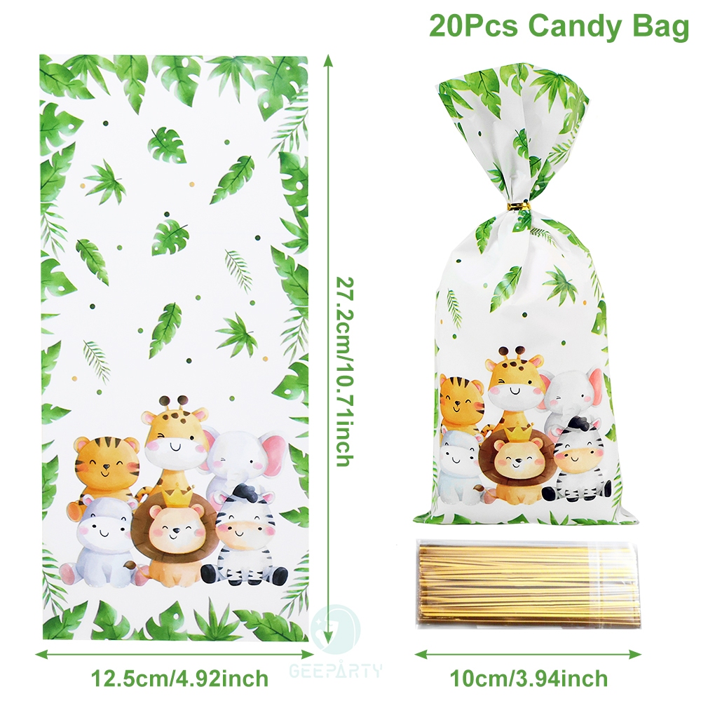 20pcs Safari Animal Theme Candy Bag Biscuit Bag Loot bags for Wild One Jungle Safari Birthday Party