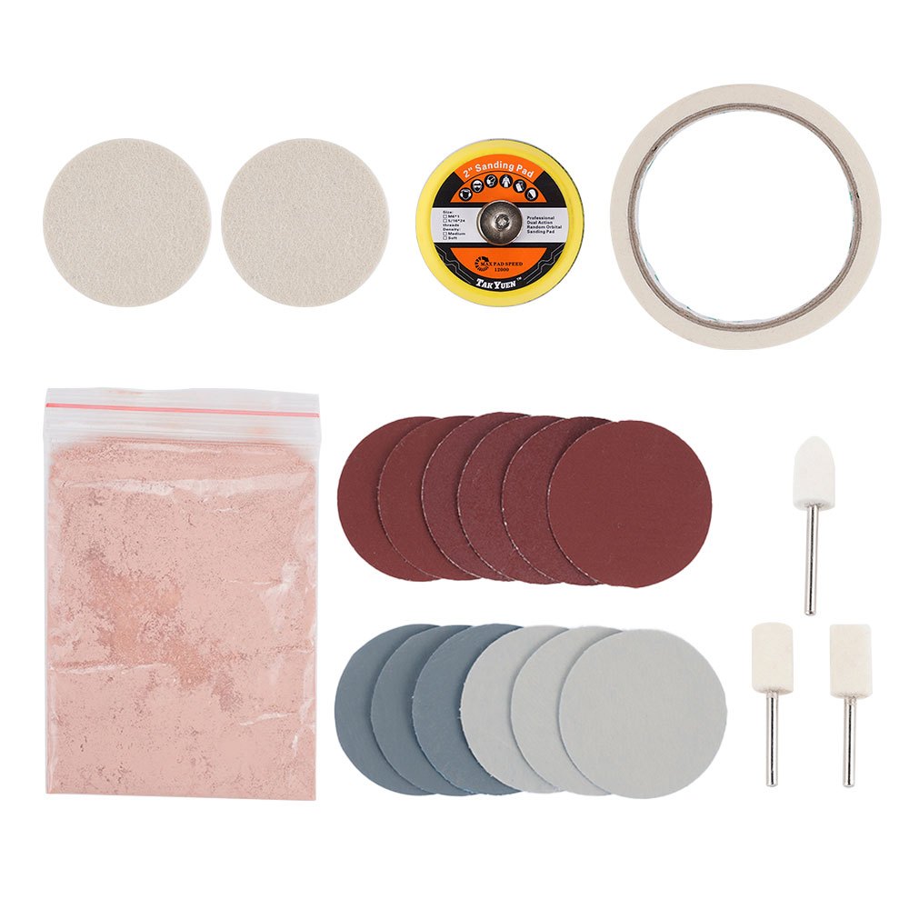 20pcs/set Watch Glass Polishing Kit Glass Cleaning Scratch/Burr/Rust/Dust Removal Polishing Pad & Wheel & Sanding Paper&Powder