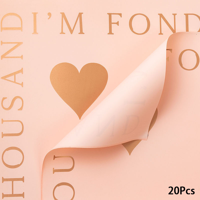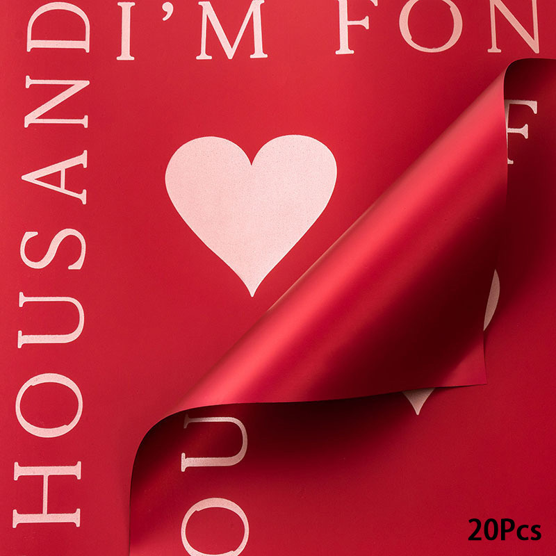 20sheet/lot 57x57cm Love Print Flower Wrapping Plastic Paper Waterproof Florist Gift Packaging Paper Korean Valentine's Day Bouquet Paper