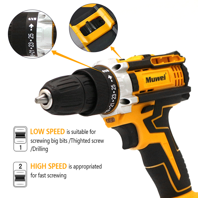 21V Cordless Drill Impact Electric Battery Screwdriver 3 Mode Powerful Drill Driver Set With Battery