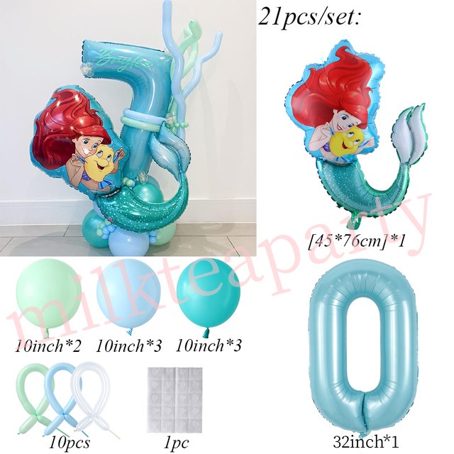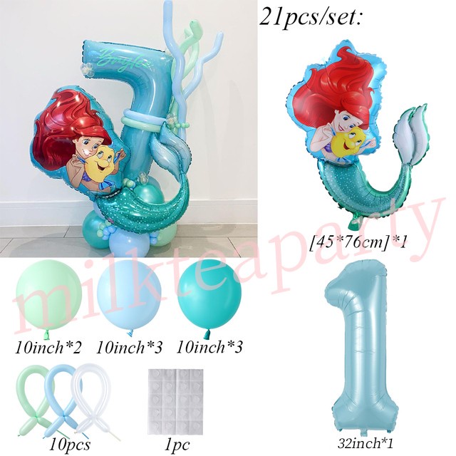 21pcs/Set Mermaid Disney Princess Ariel Balloons Party Decorations Girl Birthday Baby Shower Birthday Party Supplies