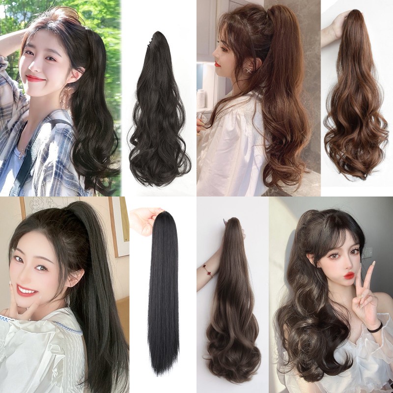 22 Inch Long Curly Hair Wig Clip Ponytail Wig For Woman Hair Wig Claw Clip Ponytail Hair Extensions