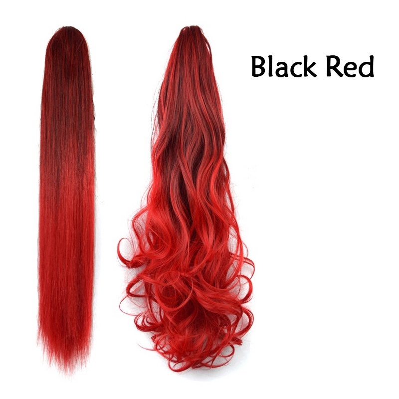 22 Inch Red Ponytail Wig Women Fashion Grab Clip Ponytail Hair Extension Wig