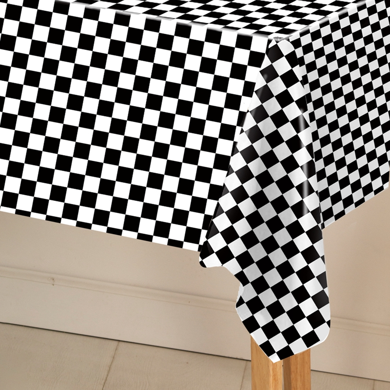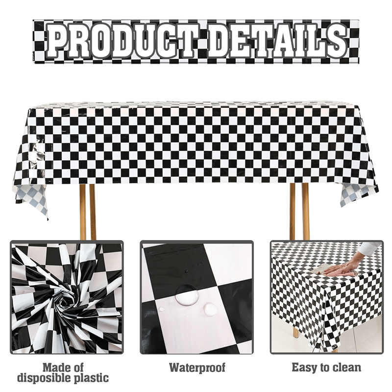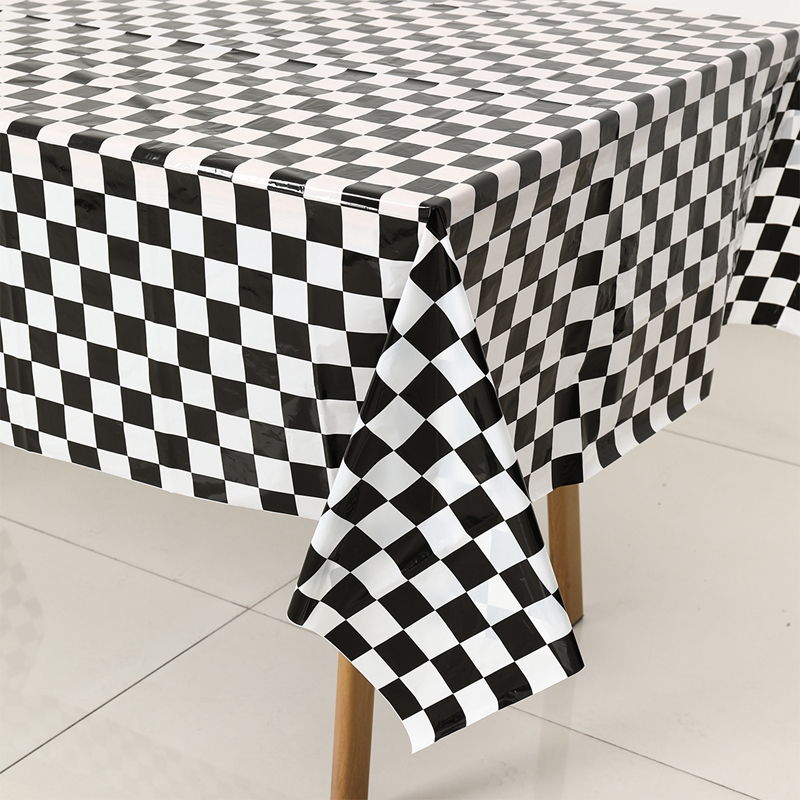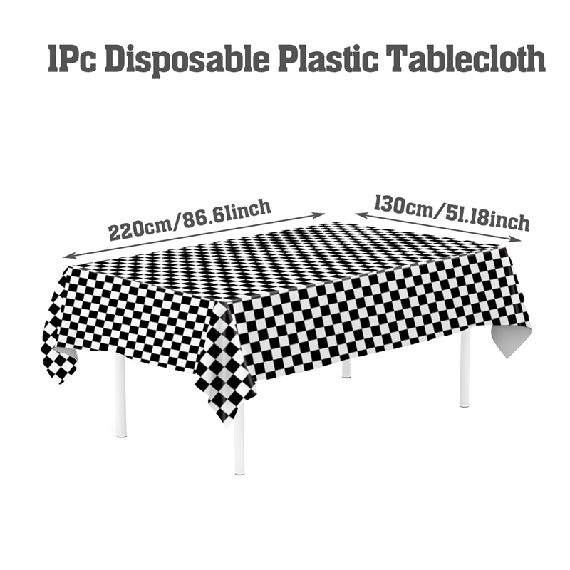 220*130cm Black White Checkered Tablecloth Disposable Plastic Table Cover For Parties Outdoor Picnic Decor Race Car Birthday Party Needs Party Decorations New Year Decor 2025