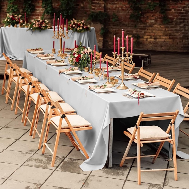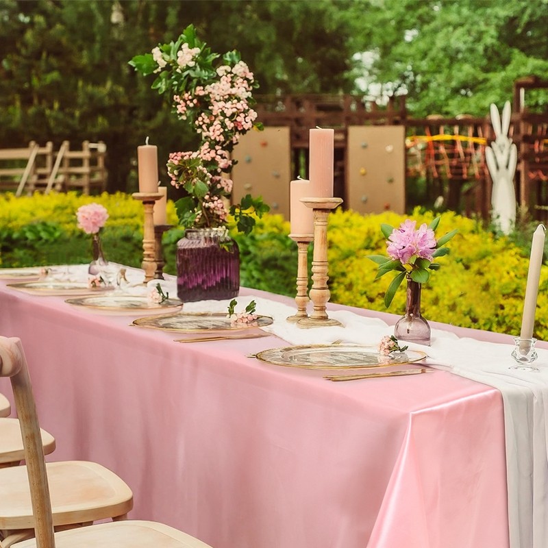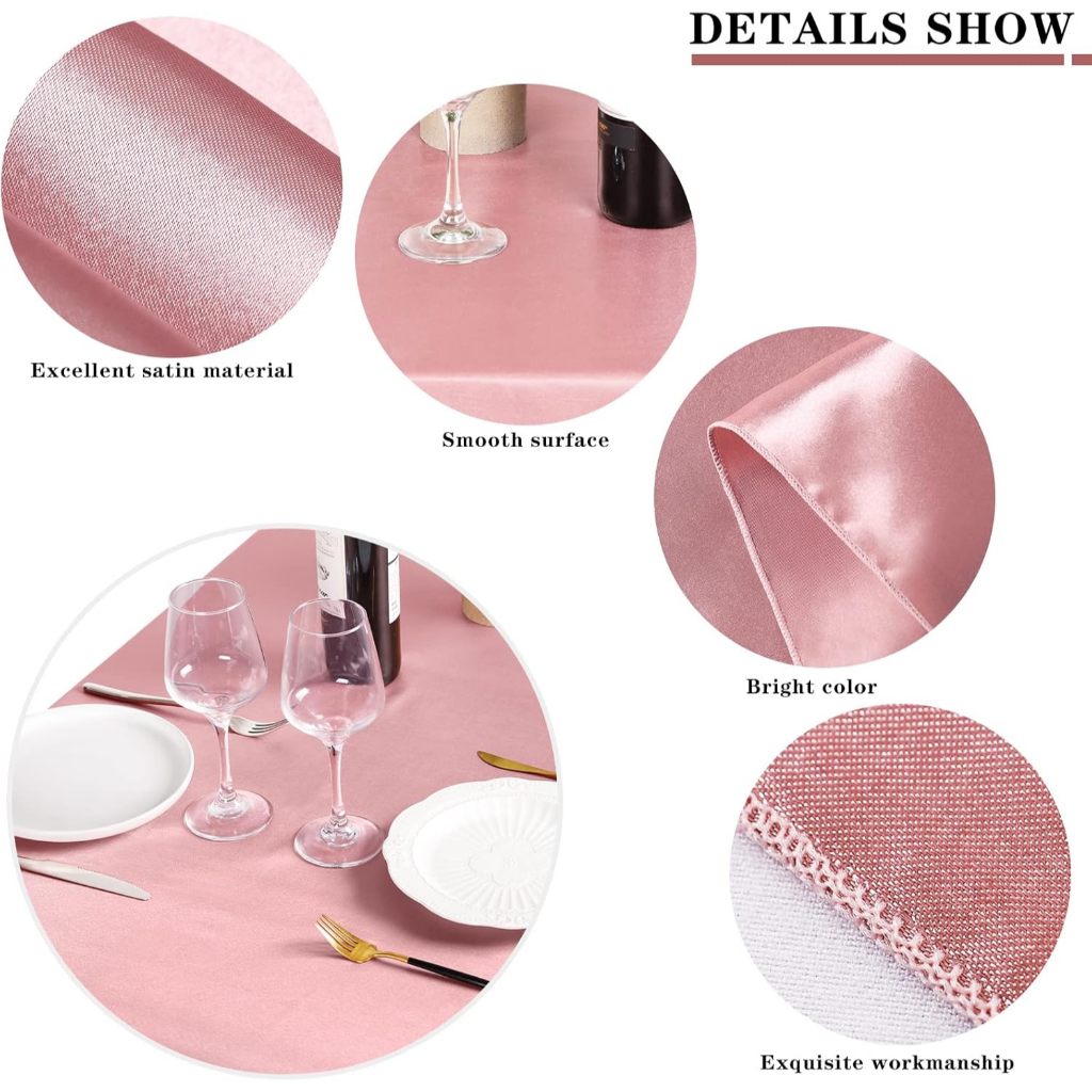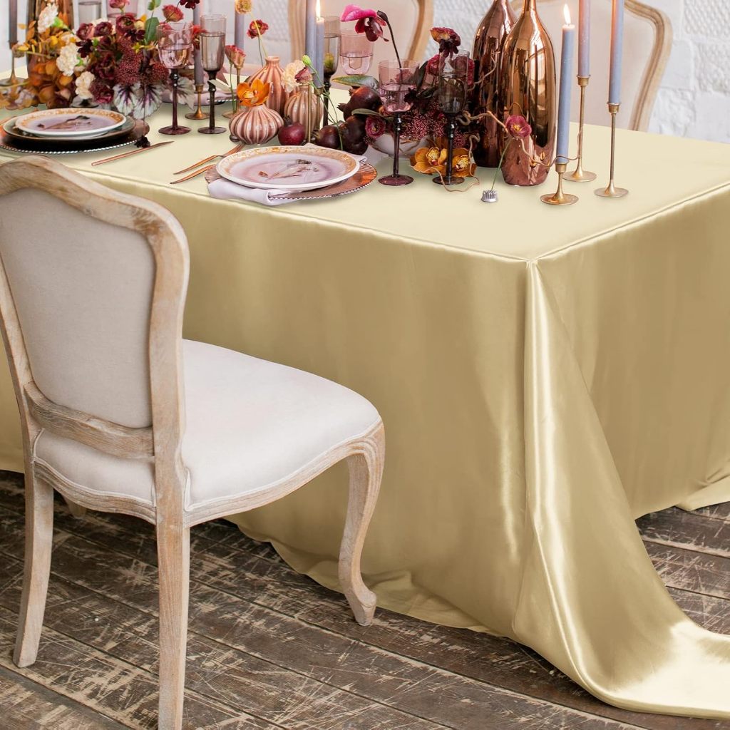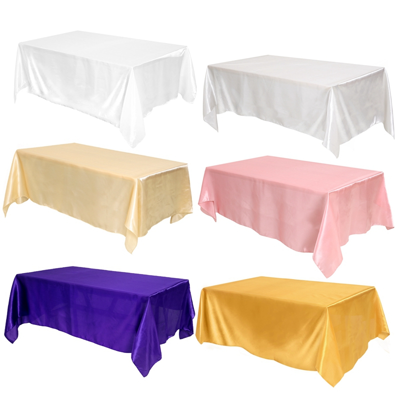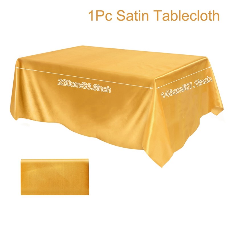 220*145cm Pink Champagne Silk Satin Shiny Table Clothes 6 Seater For Happy Birthday Party Supplies Rectangular Solid Color Table Cover Dinning Table Wedding Decor