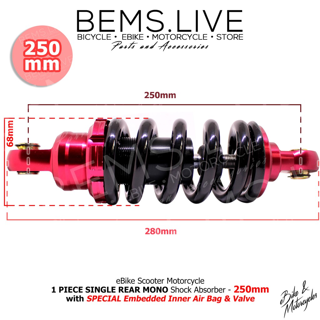 220 240 250 270 280 Rear MONOSHOCK Mono Shock Absorber w/ Special EMBEDDED AIRBAG ebikes Motorcycles