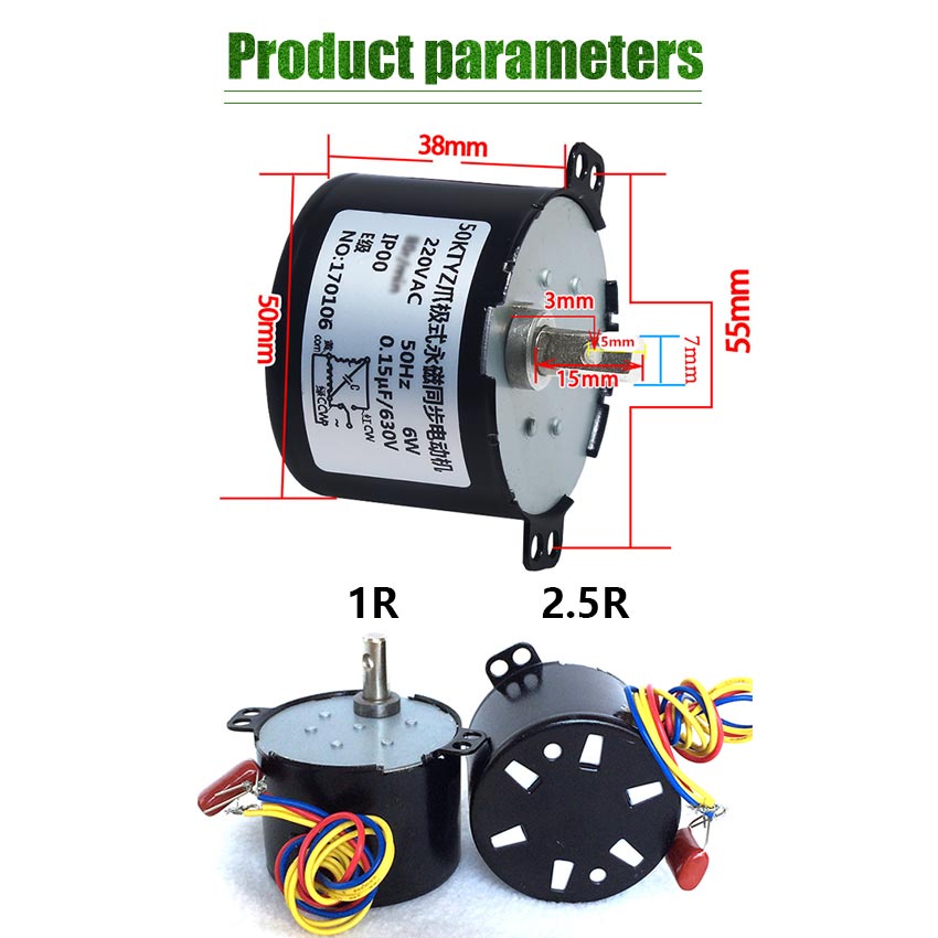 220V High Torque Low RPM AC Gear Motor 50KTYZ AC Synchronous Gear Motor Speed 1-2.5 rpm
