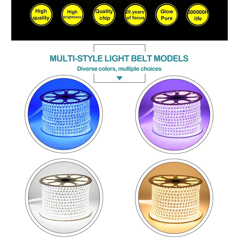 220V LED Strip Light Waterproof for Ceiling Indoor Outdoor Decorative Light Strip Background Light