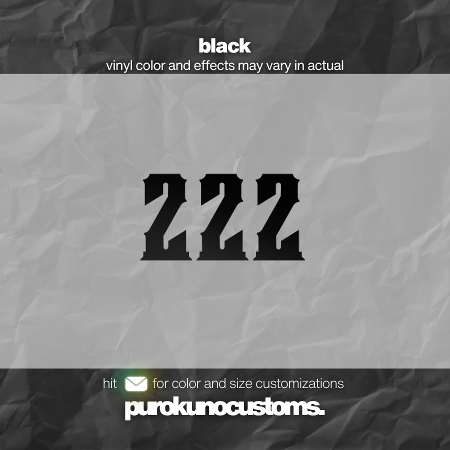 222 ANGEL NUMBER Cutout Sticker Decal for Motorcycle, Car, and Bike | PUROKUNO CUSTOMS