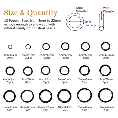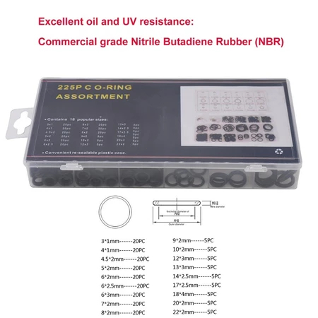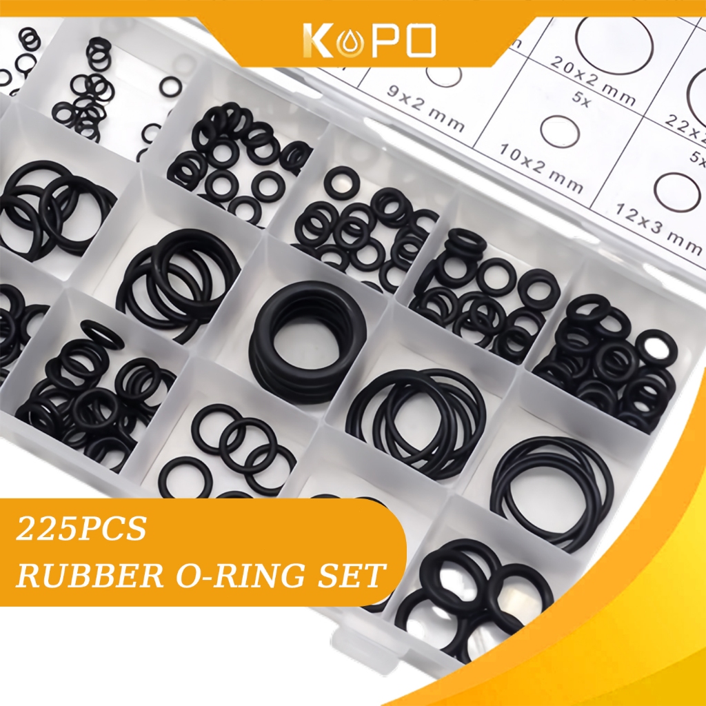 225 pcs Box Black Rubber O Ring Washer Seals O-Ring Assortment kit for Car For Pressure Washer Seals