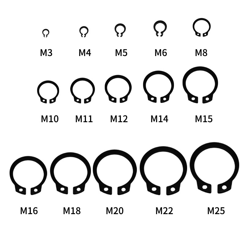 225PCS Assortment Kit Set M3 to M25 Stainless Steel Black 65MN C Type External Circlip Shaft Bearing Retaining Clip Snap Ring