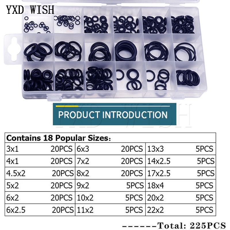 225pcs Rubber O Ring Nbr O-Ring Gasket Sealing Ring O Rings Rubber Kit Set For Car Vehicle Repair