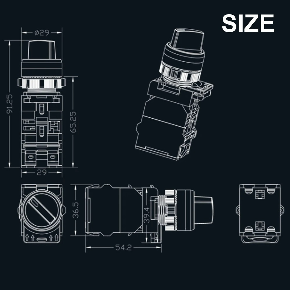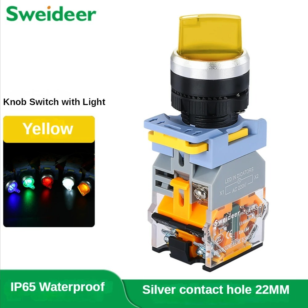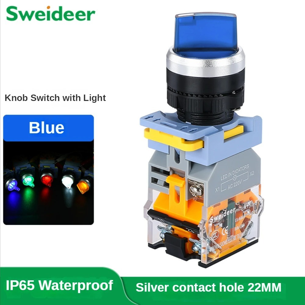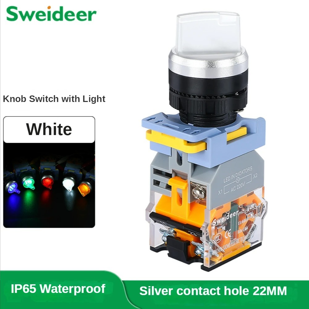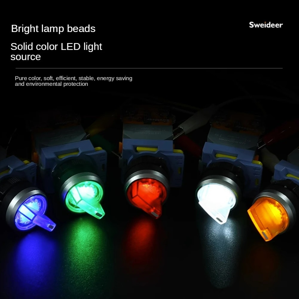 22MM Latching Momentary 2 3 Position Selector Knob Rotary Switch LED Power on Off Switch for Control Cabinet