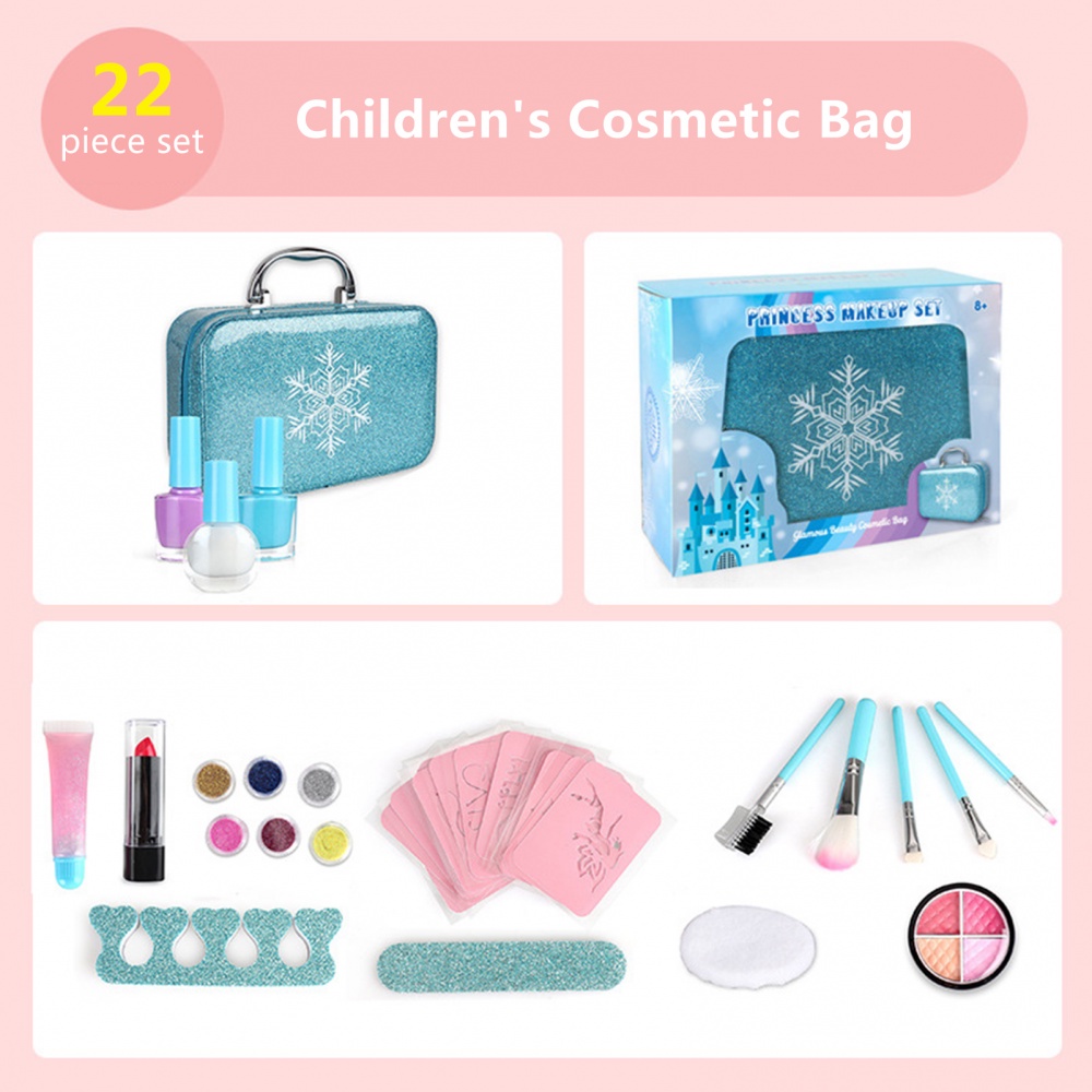22PCS Kids Makeup Kit Washable Little Girls Makeup Kit Real Cosmetic Toys Safe & Non-Toxic Frozen Makeup Set Kids Girl Birthday Gifts