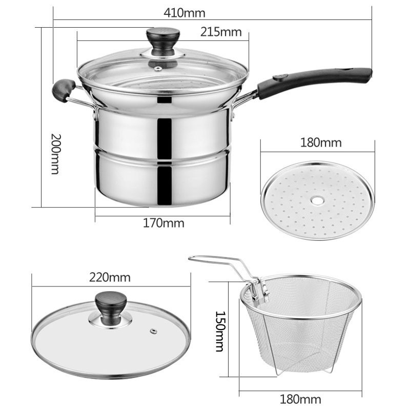 22cm Steam and Deep Frying Cooking Pot With Boil Basket Steam And Deep Frying Pot
