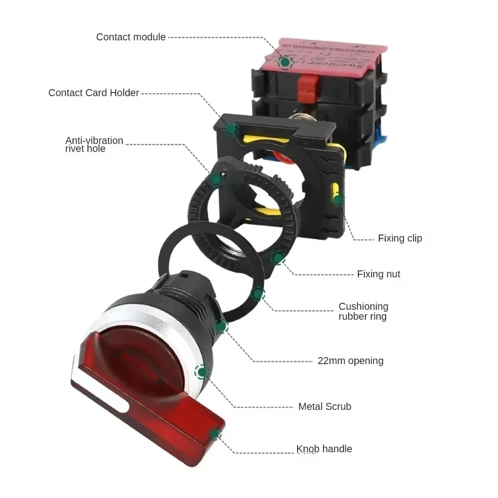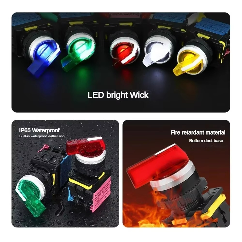 22mm Knob Switch with LED light 2/3 Position maintained latching Momentary Long Handle Select Rotary Switches