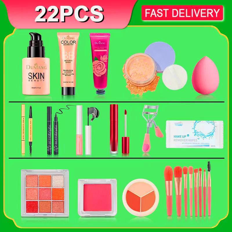 22pcs DUNFANG All-in-One Makeup Set – BB Cream, Eyeshadow Palette, Blush, Mascara, Eyeliner, Eyebrow