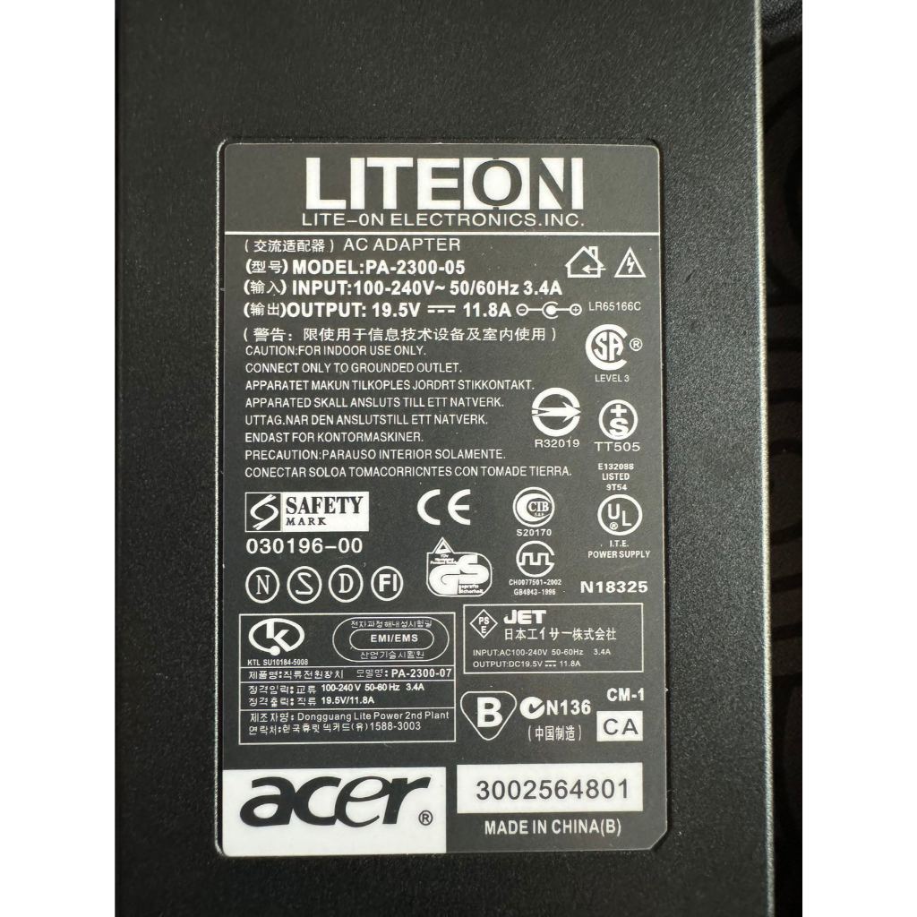 230W Acer Laptop Charger 19.5V 11.8A for Predator Helios 300 PH315-53 PH315-54 N1812 N18W3 N20C1