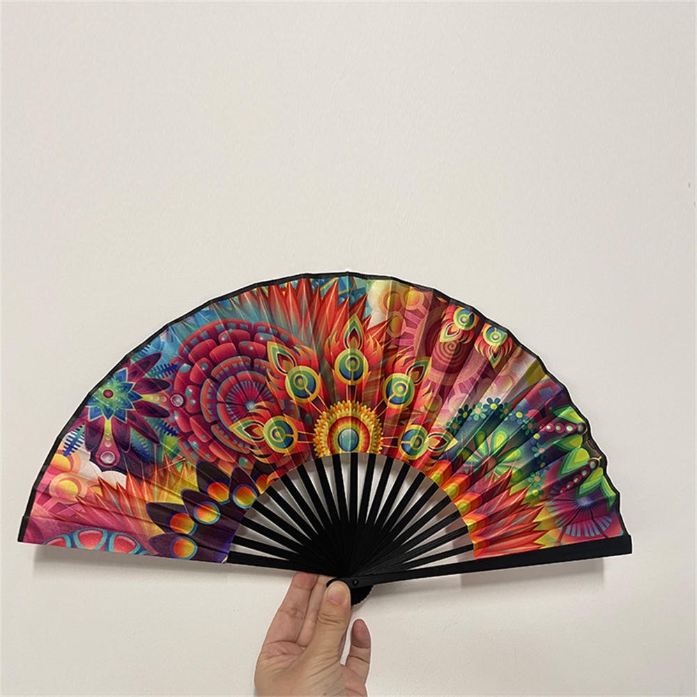 23cm Rainbow Folding Fan Hand Fans Print Ringing Bamboo Bone Fan Single side Cooling Handheld Fan Festival Performance Dance Fan Gifts