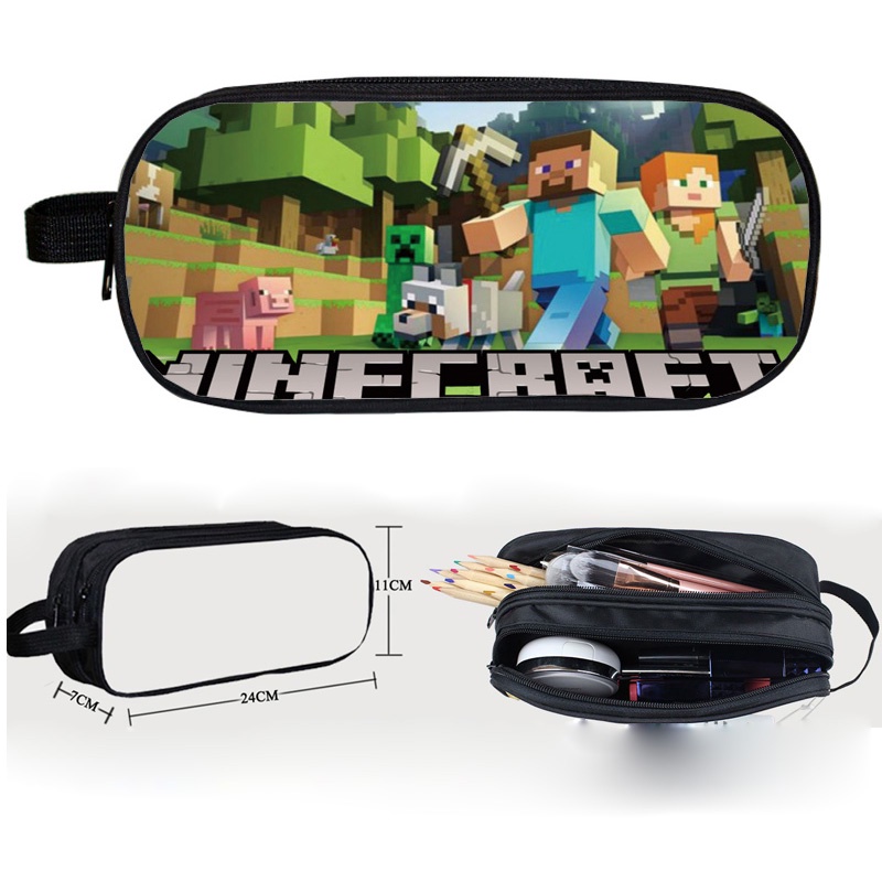 24*11*7cm 2 Laysers Game Minecrafted ROBLOX Pencil Bag Case Students Canvas Stationery Bag Coin Purse Zipper Pencil Case