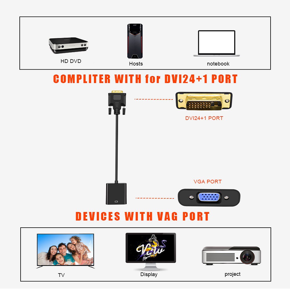 24 1 25 Pin DVI d VGA Adapter DVI-D/DVI to VGA Active/Converter/Cable Male to Female for TV PC