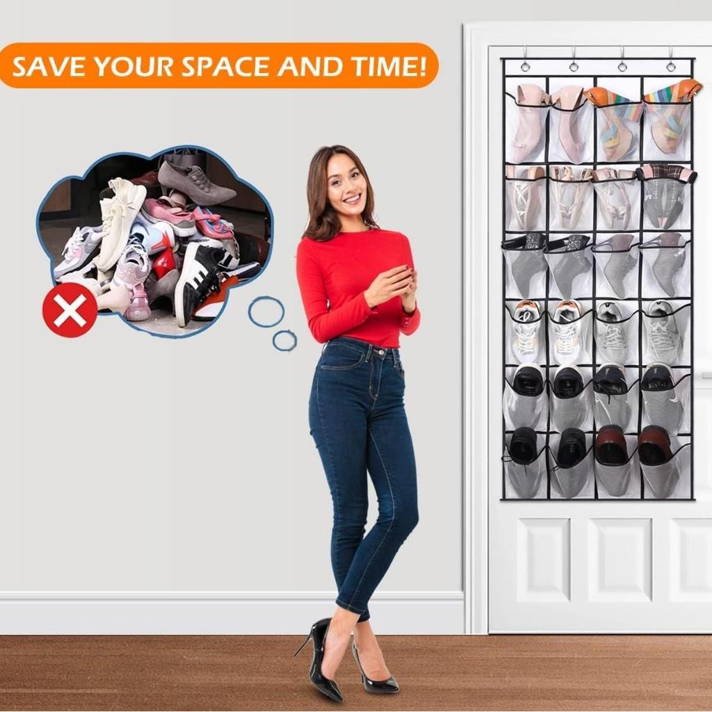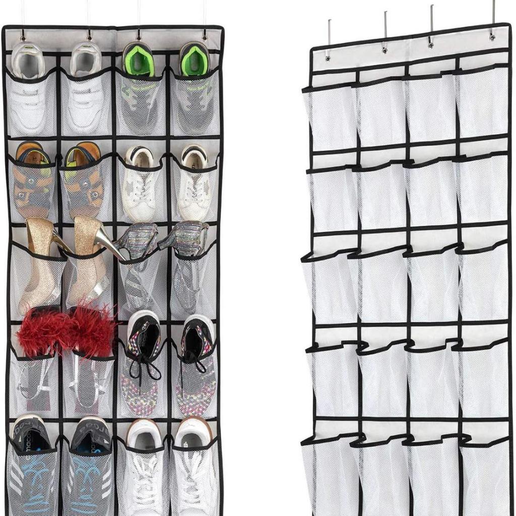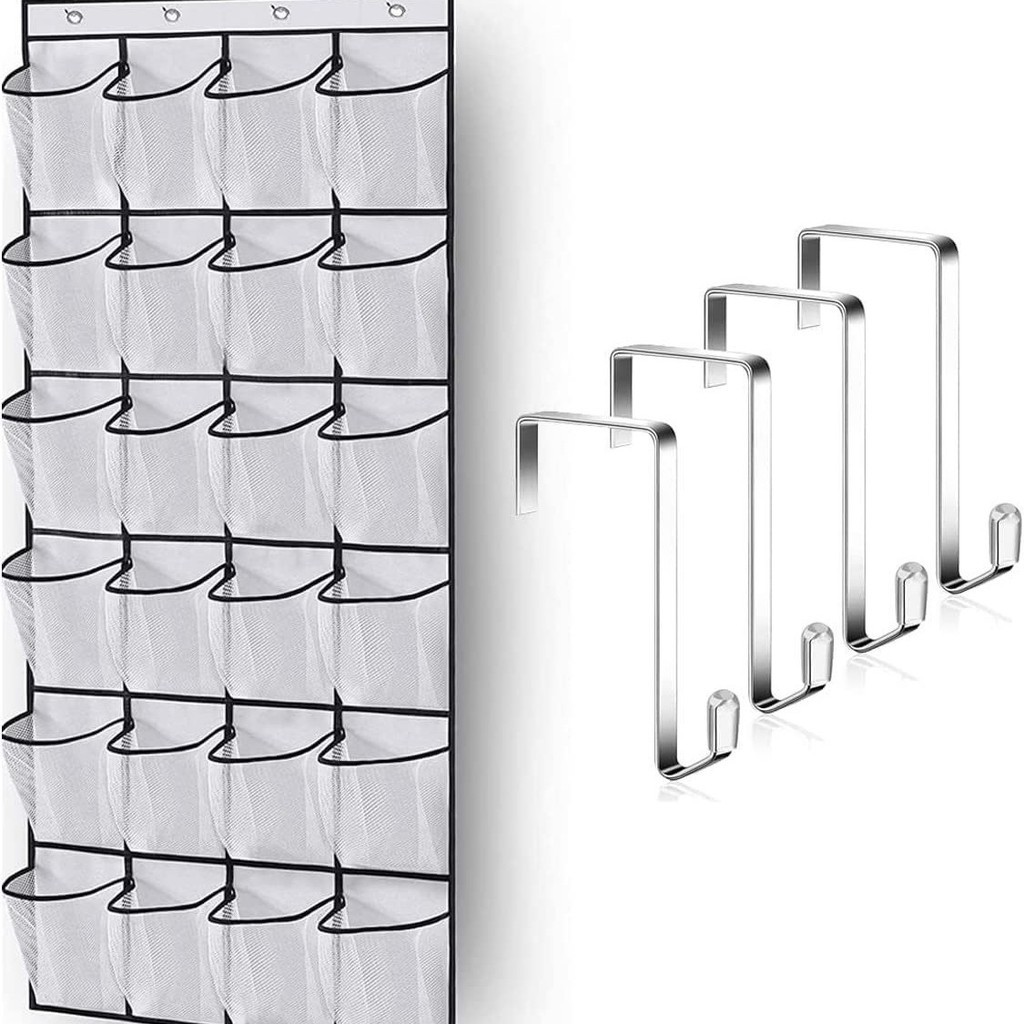 24 Grids Hanging shoe Storage Bag Behind Door Multifunctional Wall Mounted Mesh Storage Box(4 Hook)