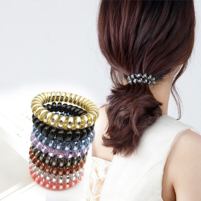 24 PCS Telephone Wire Hair Ponytail Assorted Color