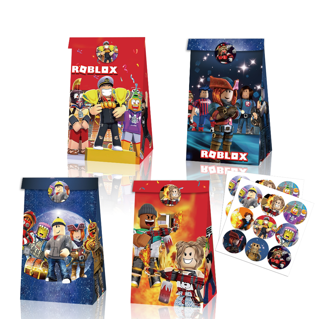 24 Pcs Party Bags for Roblox Theme Party, Kraft Paper Treat Goodie Bags for Boys/Girls