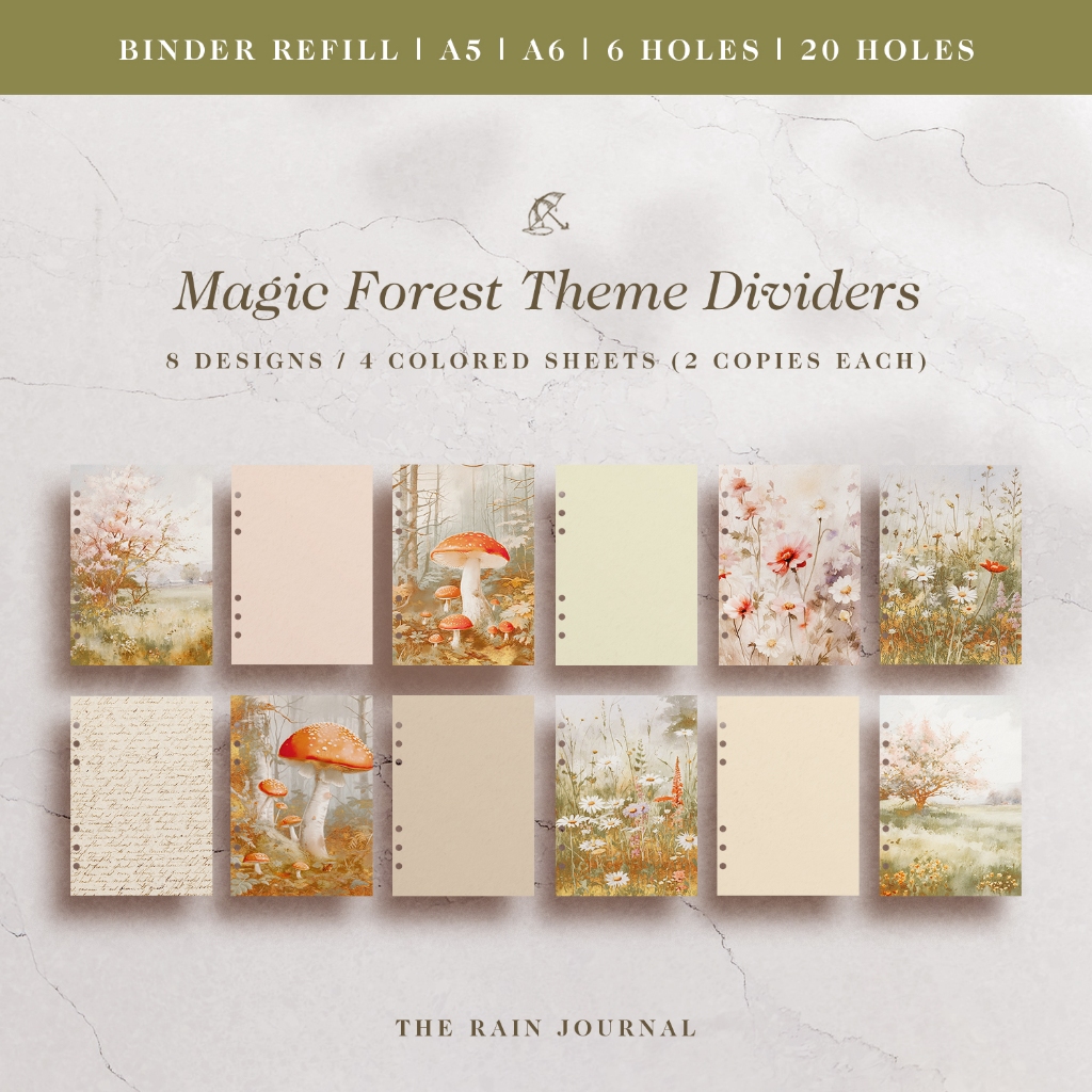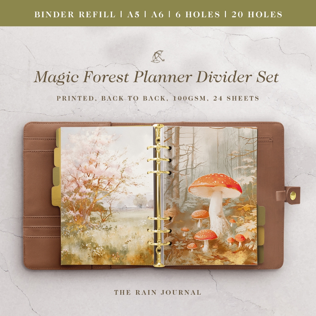 24 Sheets Magic Forest Planner Divider Set for Ring Binders - Printed Back to Back on 100 GSM Paper