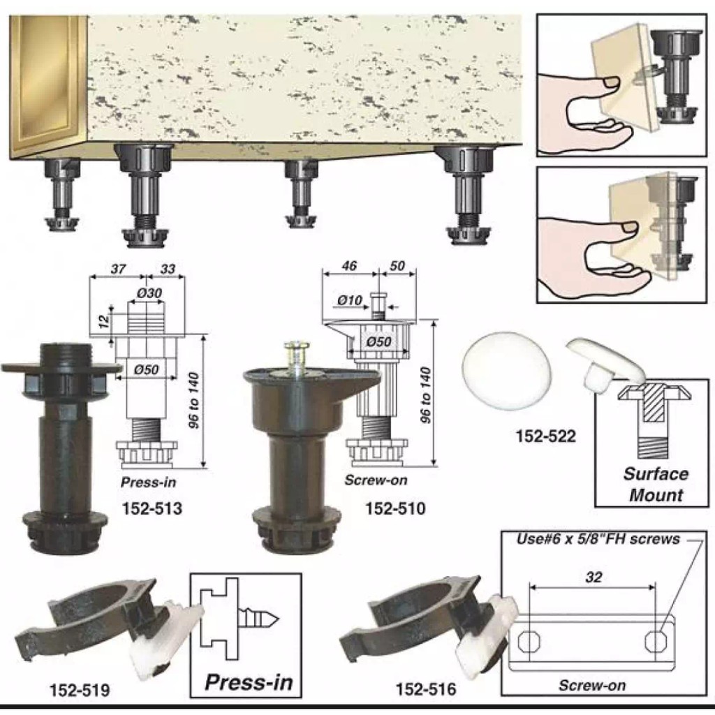 24 pcs Plastic Adjustable Height Kitchen Cupboard Plinth Foot Leg