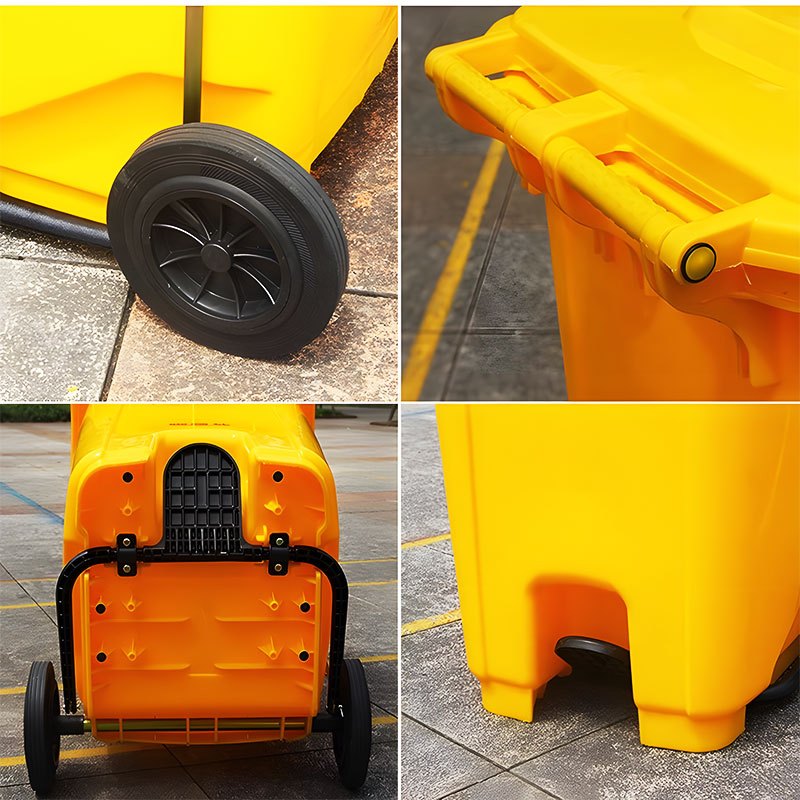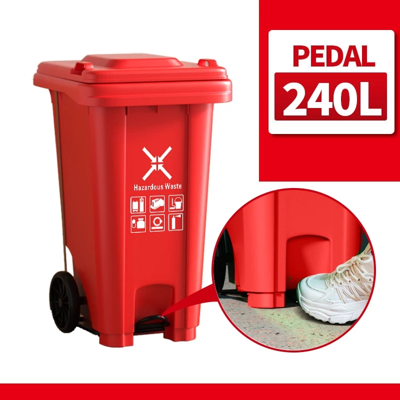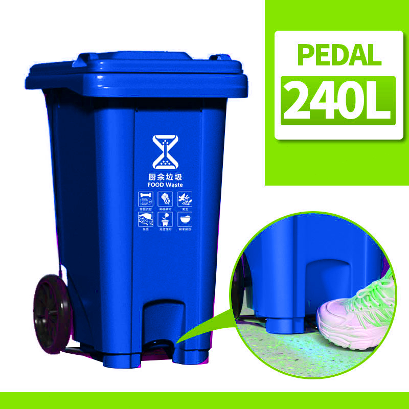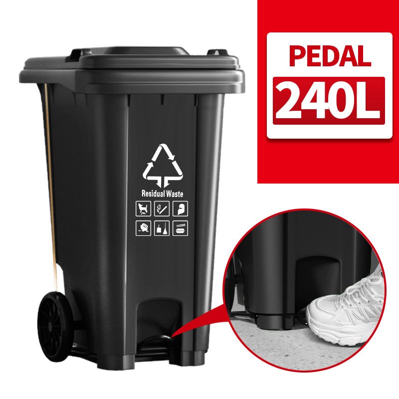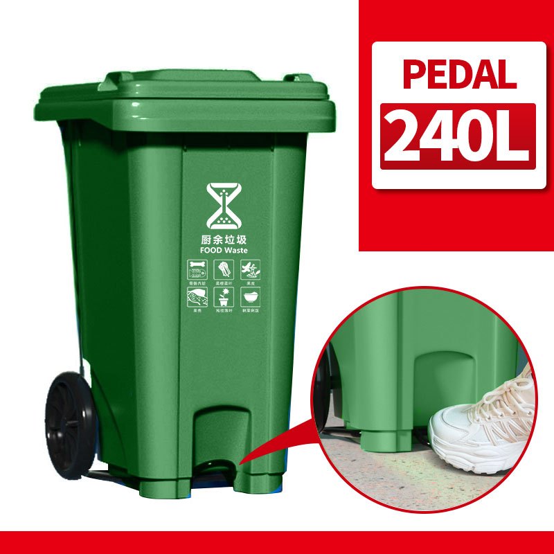 240L Trash Bin Big Outdoor Sanitation Impact Resistant Garbage Can with Pedal Wheel