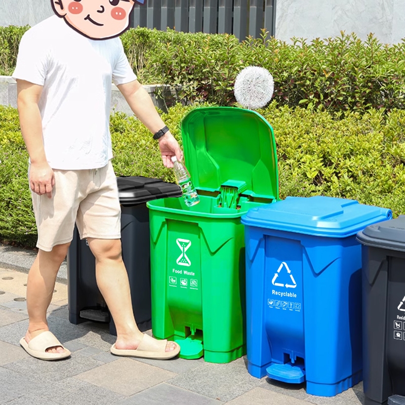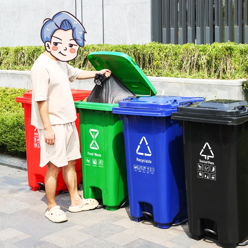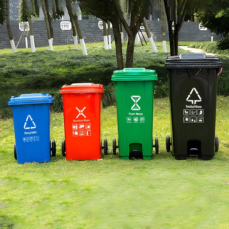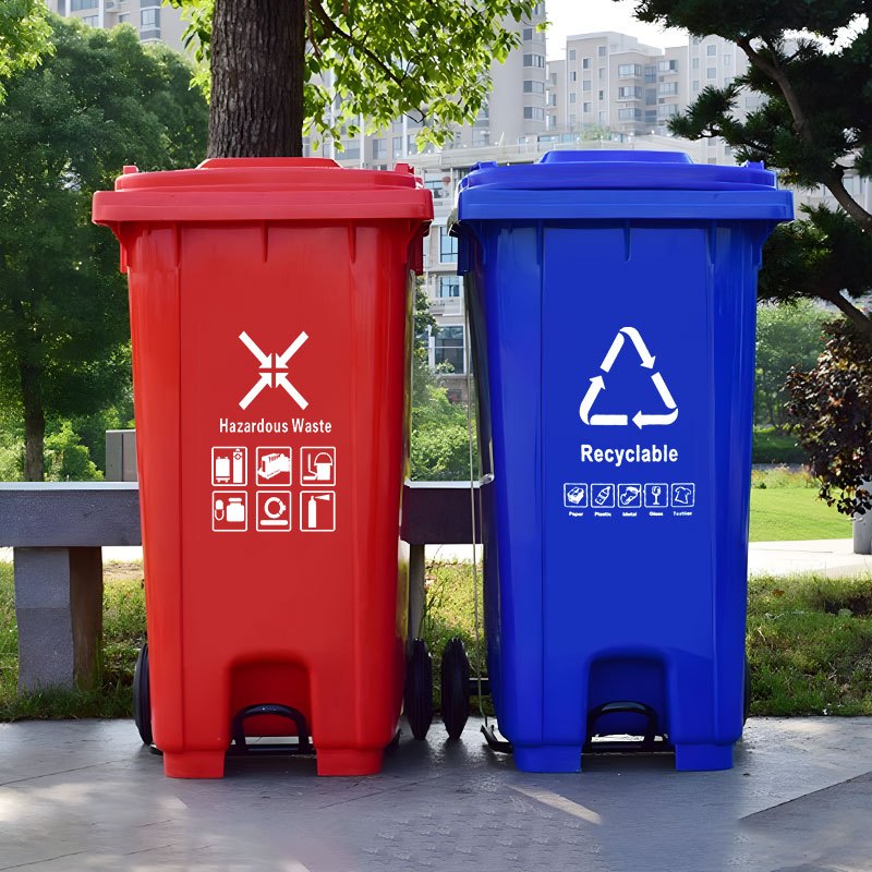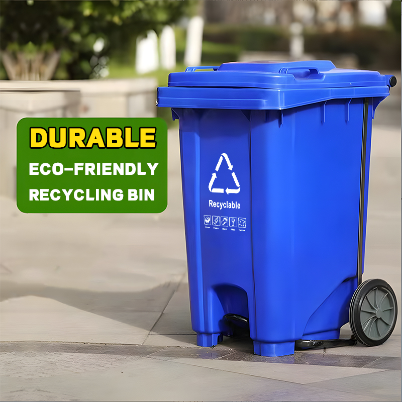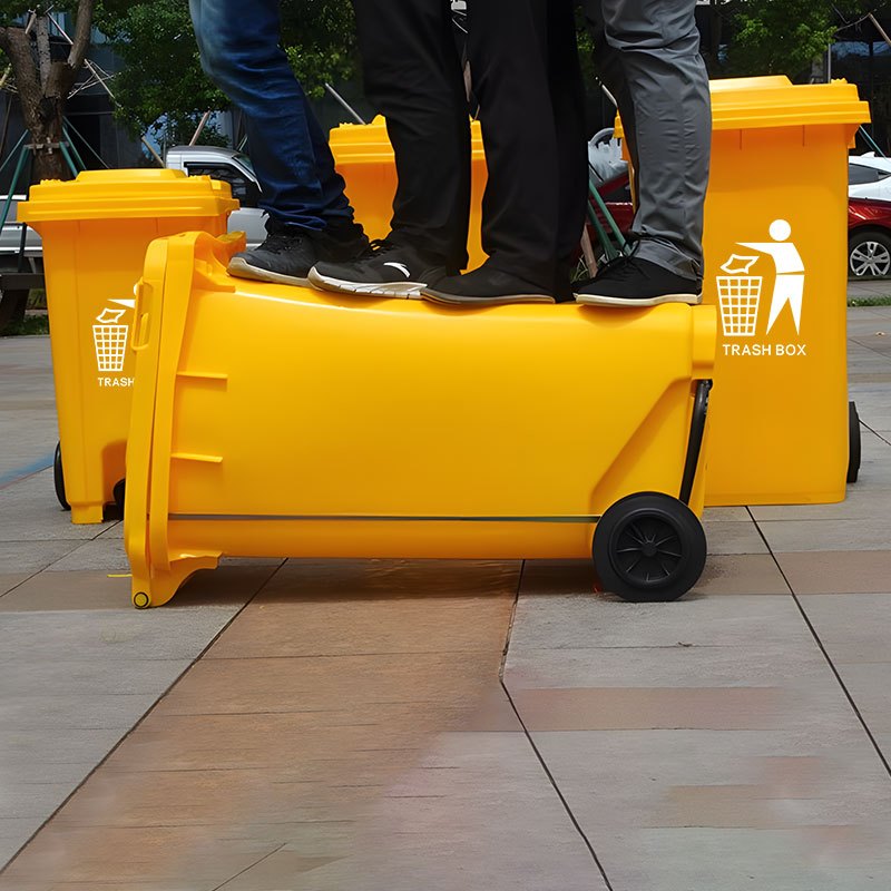 240L Trash Bin Big Outdoor Sanitation Impact Resistant Garbage Can with Pedal Wheel