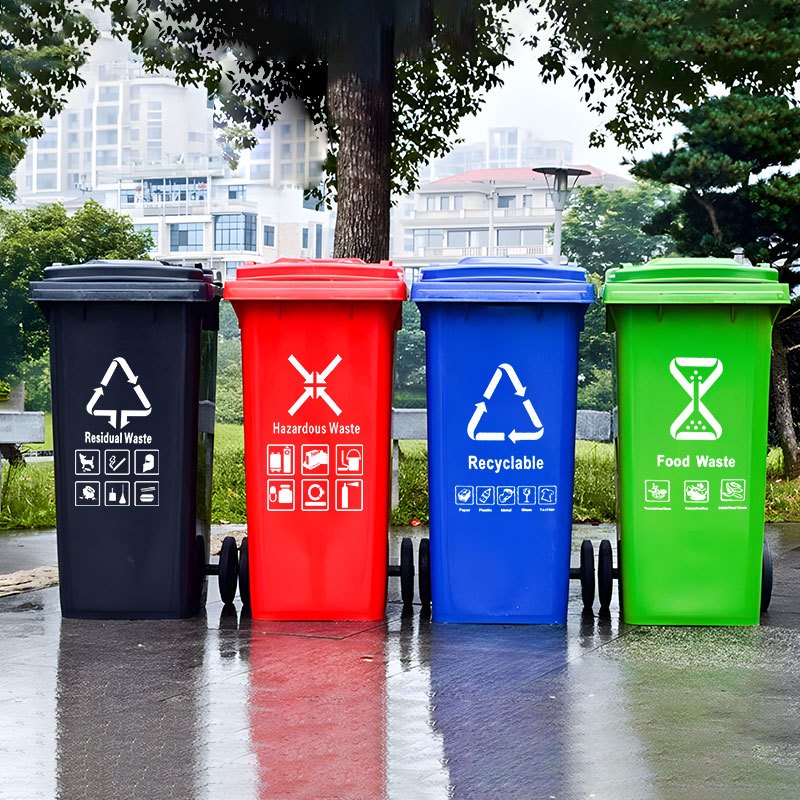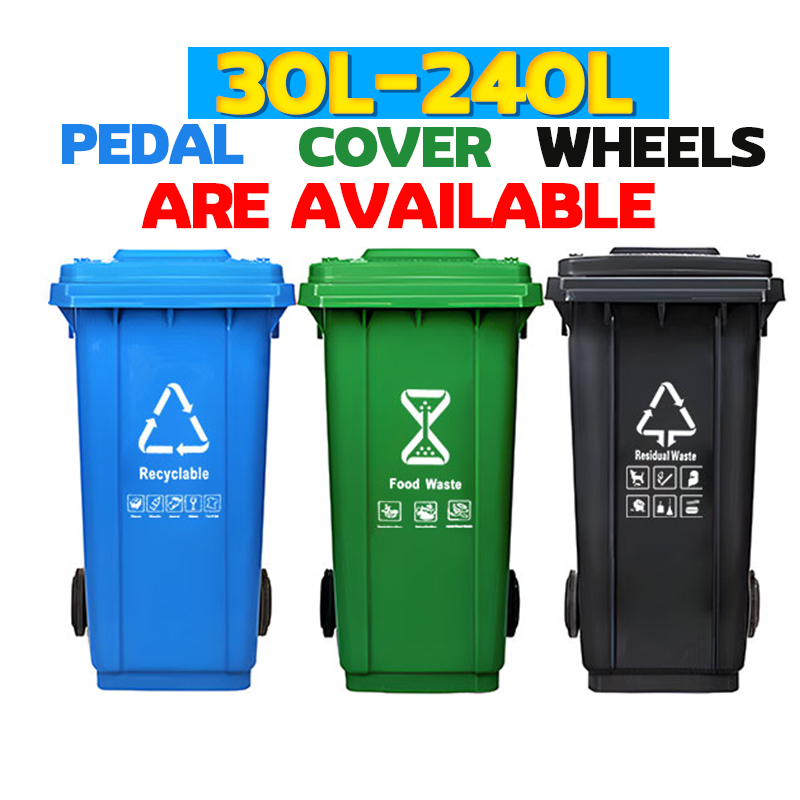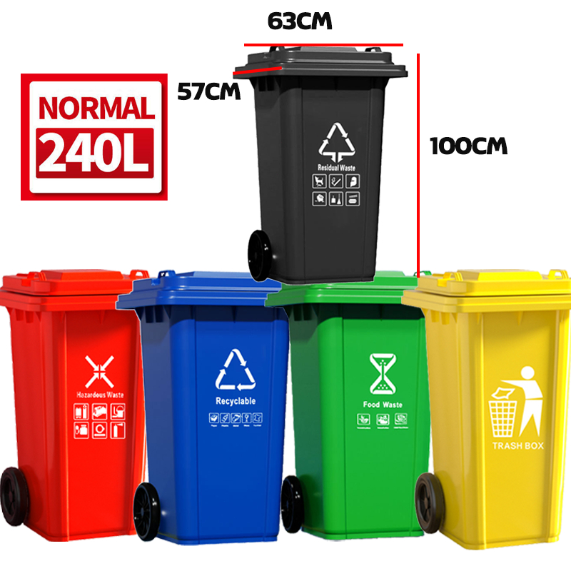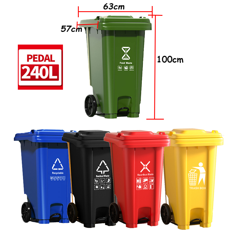 240L Trash Bin Outdoor Trash Can Cover Big Impact-Resistant Sanitation Garbage Bin Can with Pedal