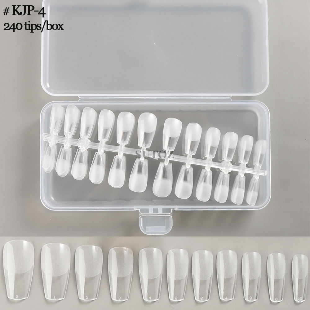 240Pcs Extension False Nails Art Tips Semi-Frosted Clear Full Cover Almond Fake Nails Quick Building Forms Manicure Tools