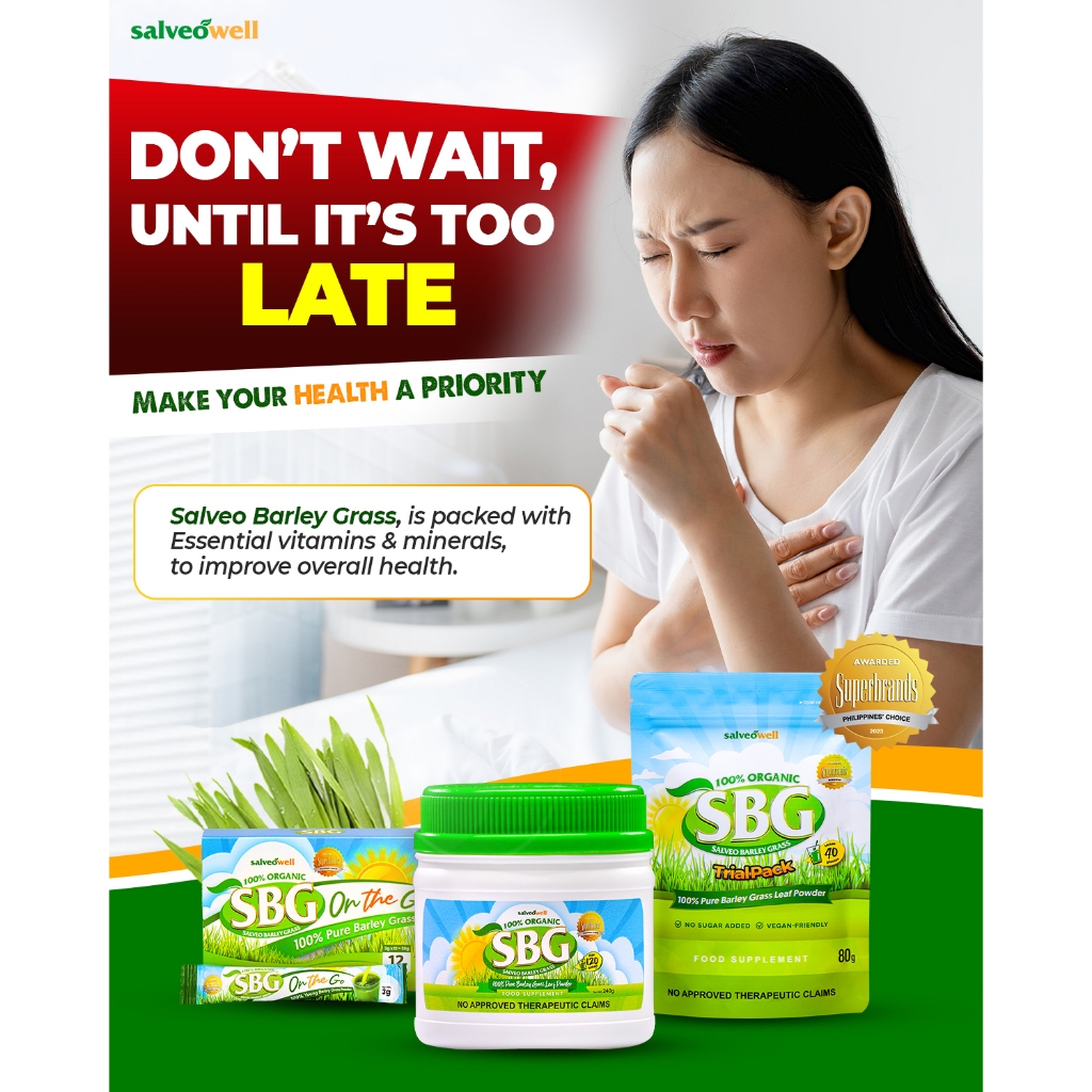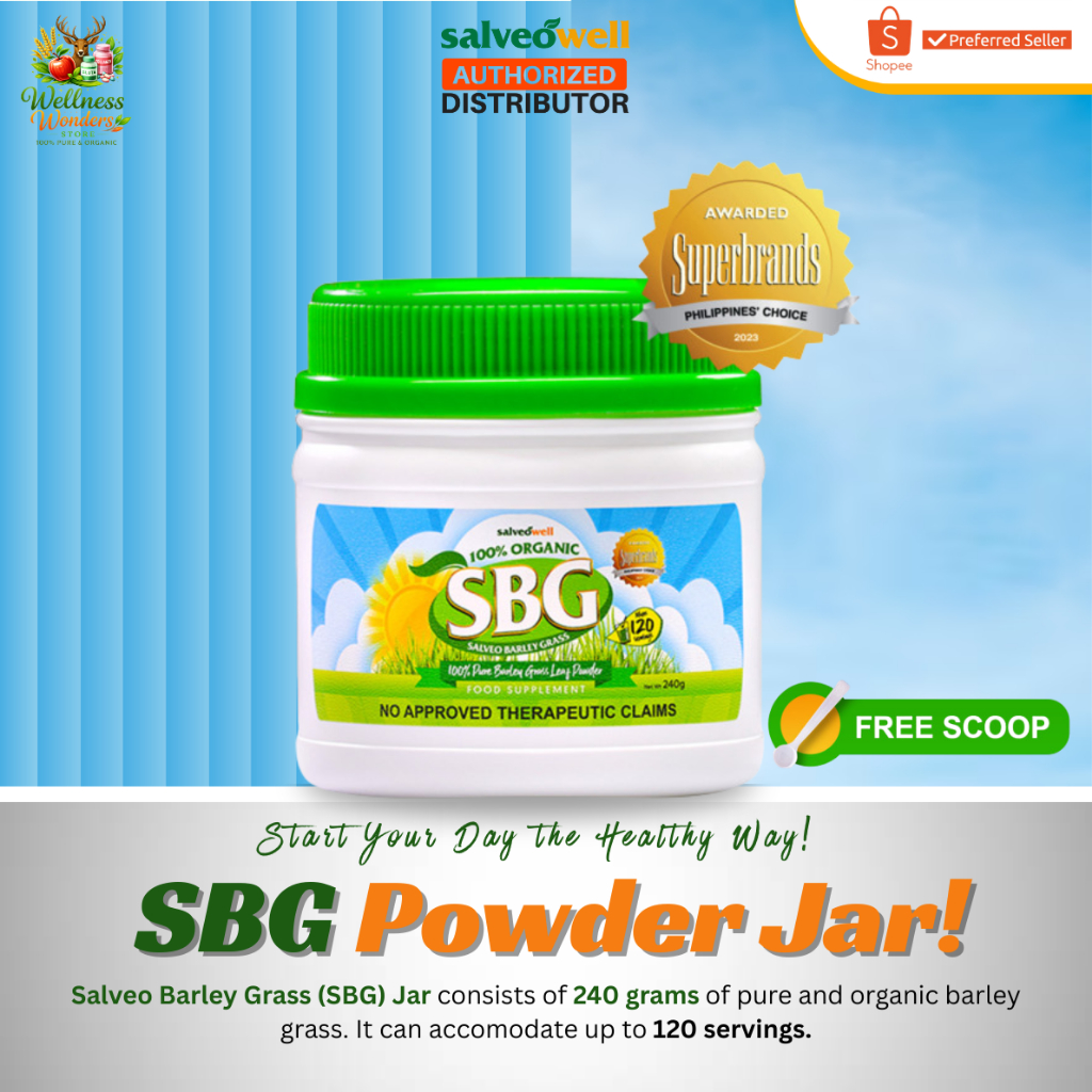 Salveo Barley Grass Powder SBG Jar - Detox & Immune Boost - Pure & Organic 240grams Wellness Support