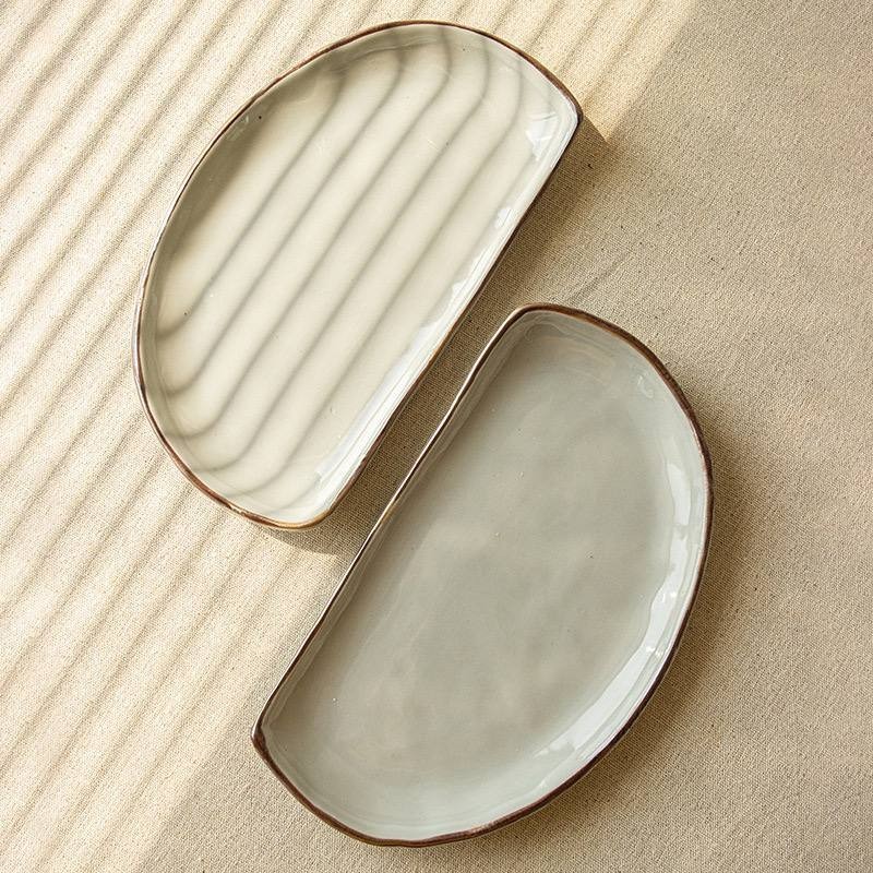 24K Ceramic Stoneware Irregular Shape Serving Snack Plate KP613