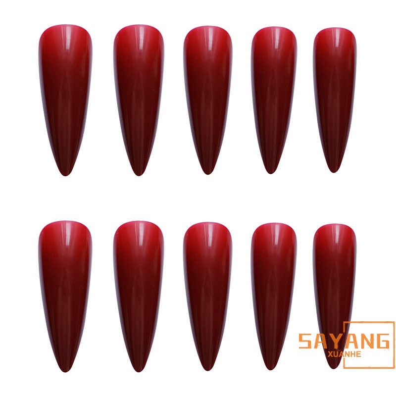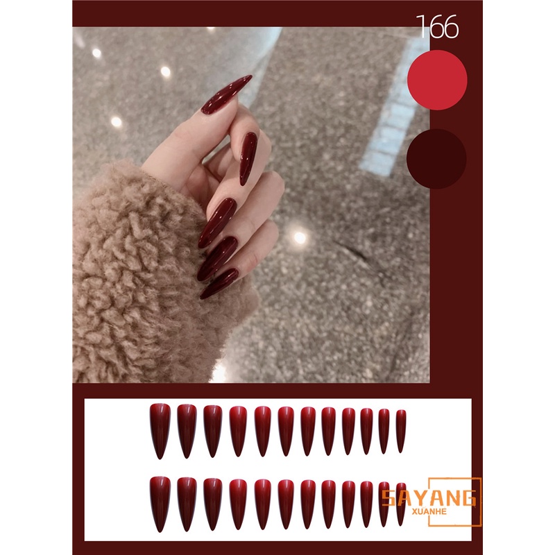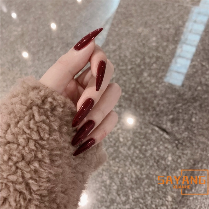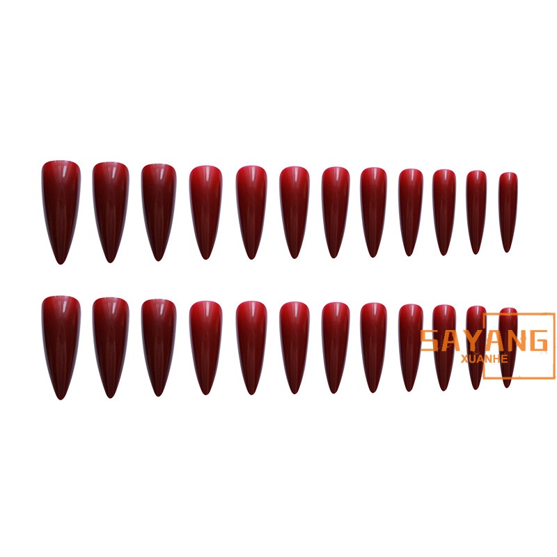 24PCS Red Wine Nail Patch Fench Style Glue Type Removable Super Long Paragraph 24PCS Fench Style Glue Type Super Long Paragraph Manicure Save Time False Nail Patch Removable