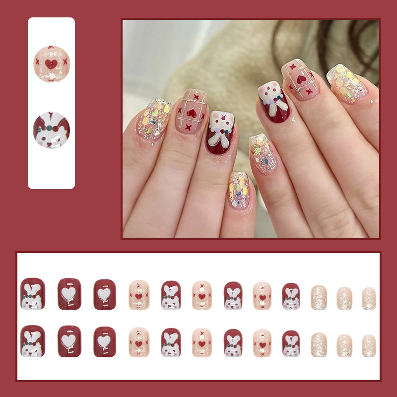 24Pcs Fake Nail Stickers /Jelly Gel/Nail Stickers/glue/Nail Glue
