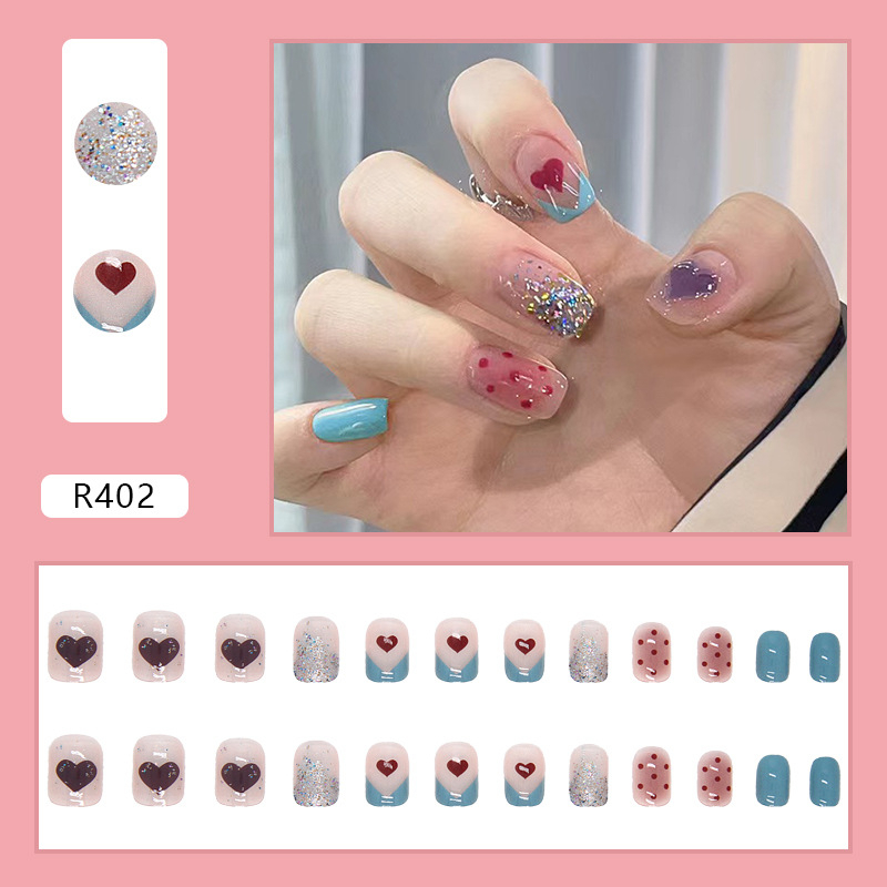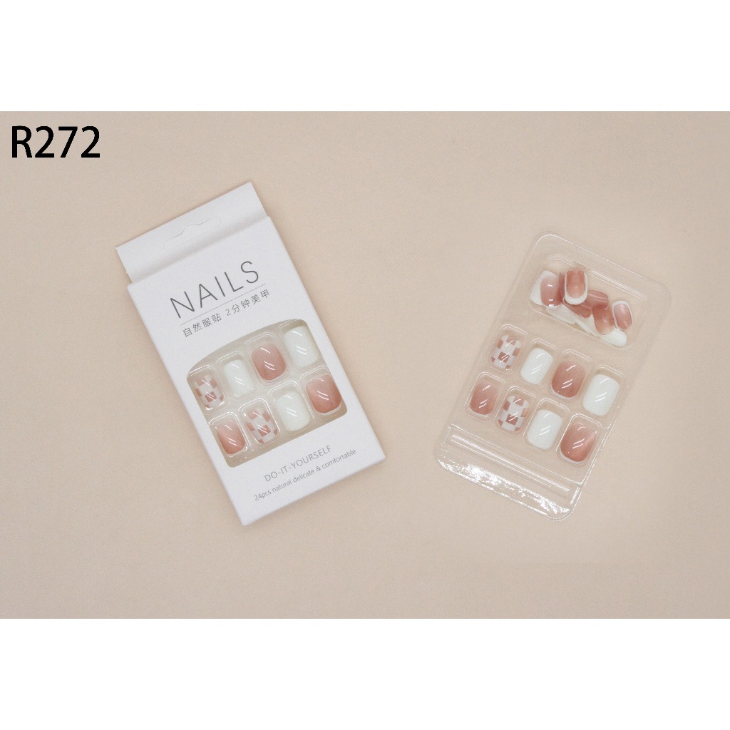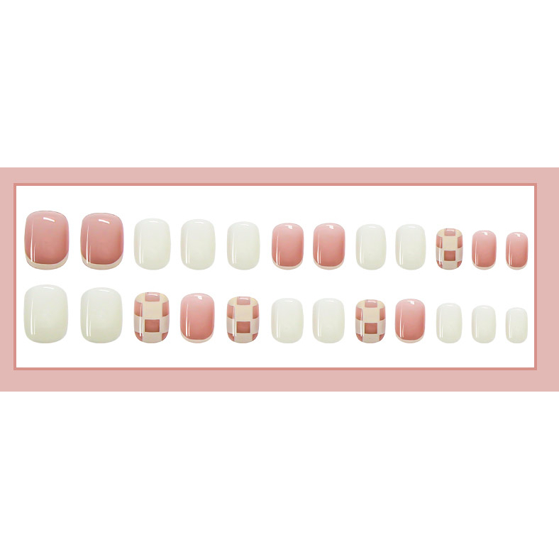 24Pcs Fake Nails Set With Jelly Gel glue Sticker Design DIY French Finger Nail Art