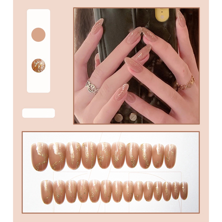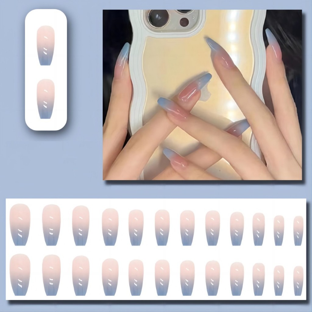 24Pcs/set Fake Acrylic Nails With Design Long Fake Nails Set With Glue 2026 Newest Fake Nails COD