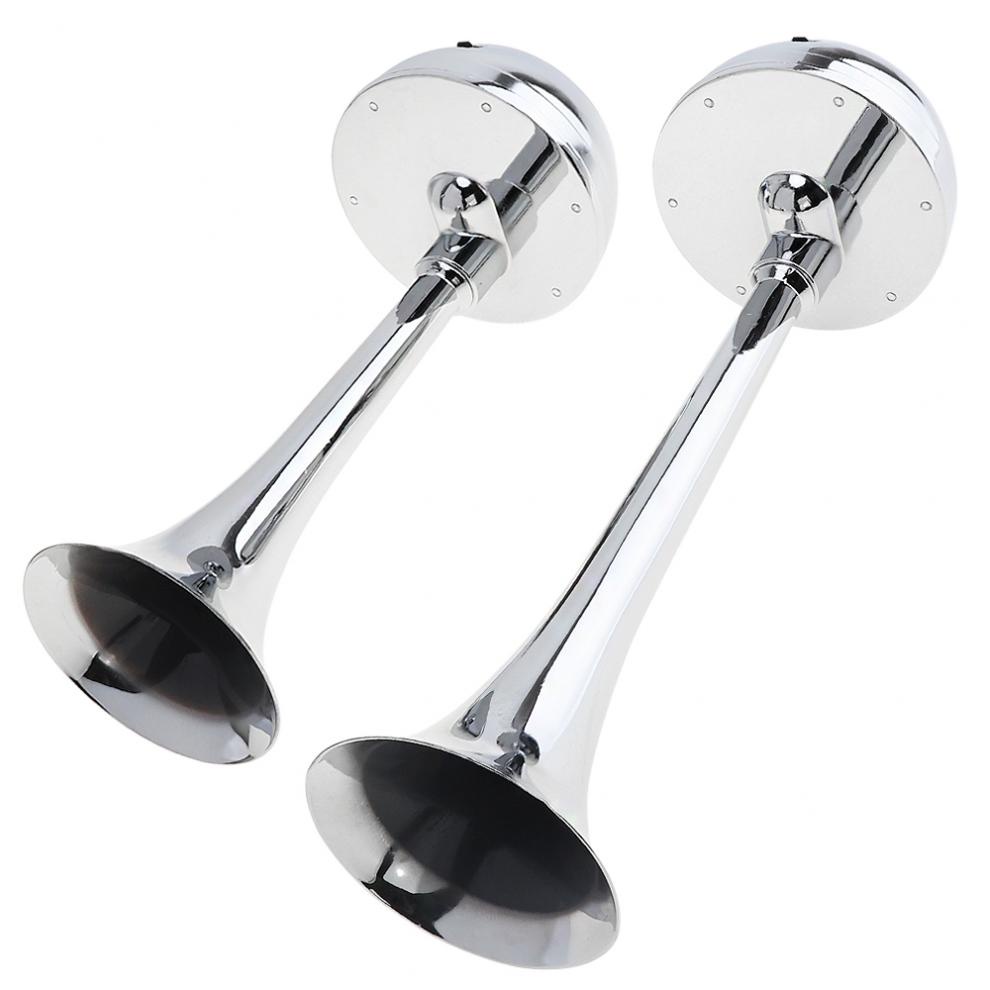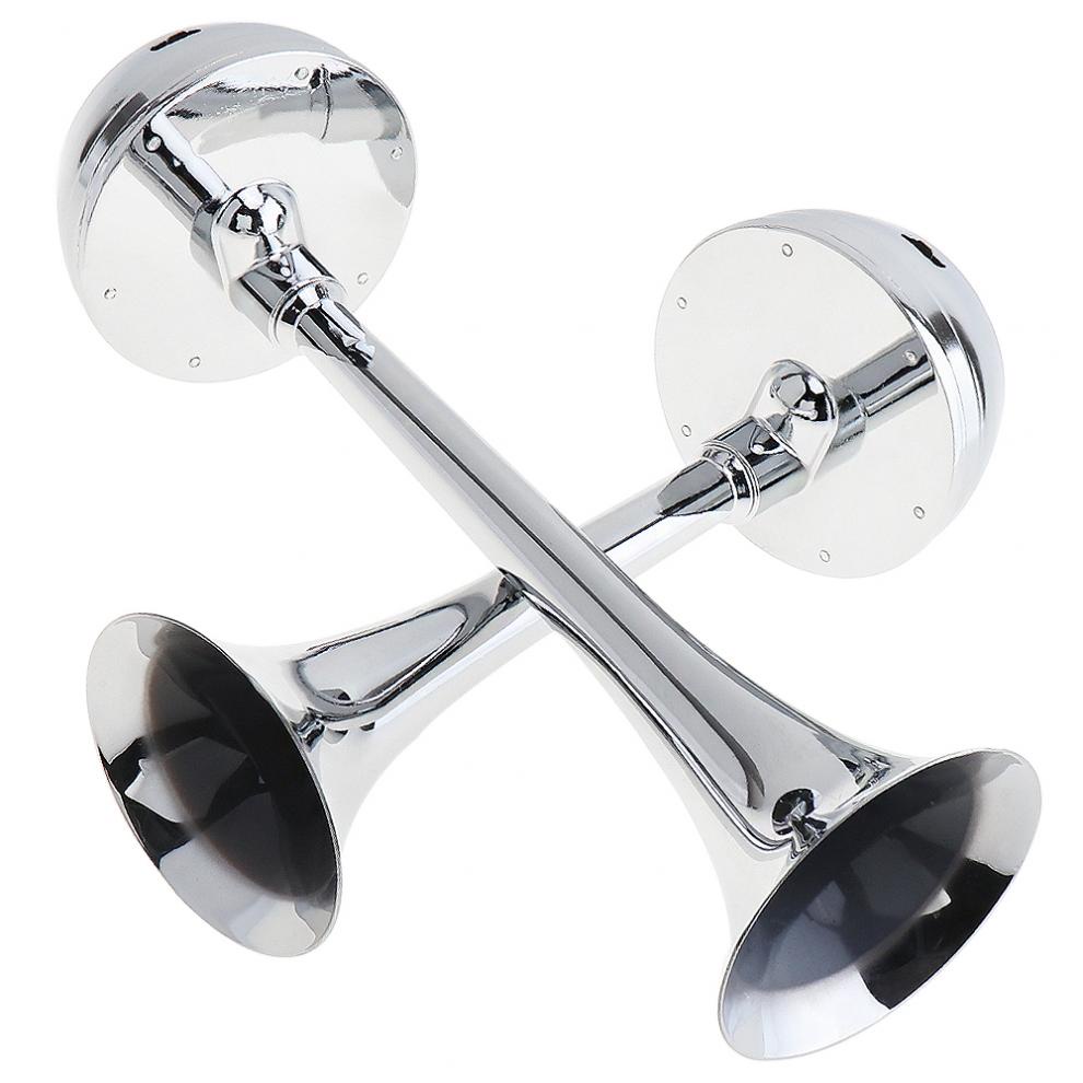 24V 126DB Super Loud Powerful Dual Trumpet All Metal Tracheal Electric Air Horn with Bracket / Relay No Need Compressor